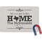 This design features a beatuiful graphic that spells out "Home" with your home state substituted for the "o". You are able to change the state to one of the 50 United States in our system. There is personalizable text above and below this with some ornate brackets on the top and bottom as well. The background is a subtle herringbone brick pattern that gives a nice homey touch. The color scheme is simply light and dark grey. This is the perfect design for home decor or a gift for a friend.