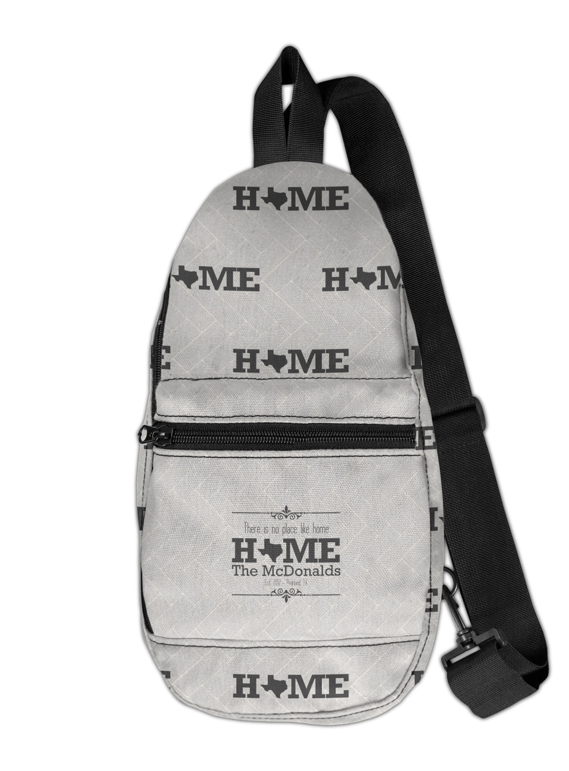These sling bags are made from a durable polyester canvas. The fabric is printed with your design, then cut and hand sewn right here in the USA.