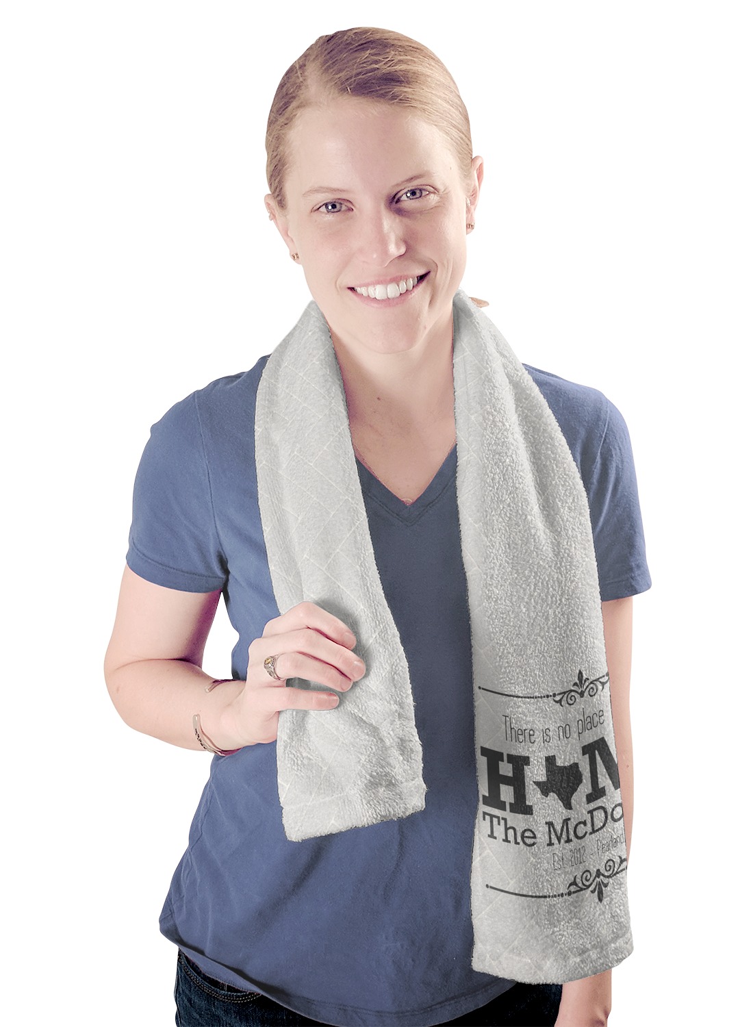 Go to the gym in style with a personalized sports towel. Whether you are running, doing strength exercises, or playing a sport, you need a good towel to wipe away your perspiration. Don't settle for a boring towel! Get one that will be sure to catch eyes.