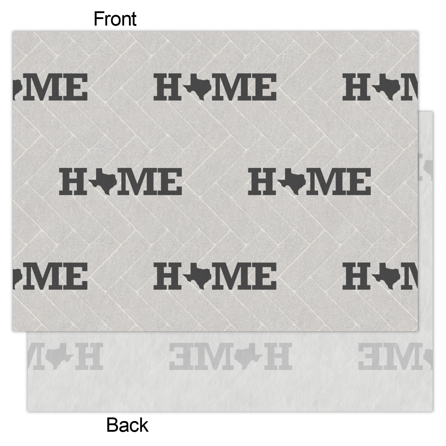 This design features a beatuiful graphic that spells out "Home" with your home state substituted for the "o". You are able to change the state to one of the 50 United States in our system. There is personalizable text above and below this with some ornate brackets on the top and bottom as well. The background is a subtle herringbone brick pattern that gives a nice homey touch. The color scheme is simply light and dark grey. This is the perfect design for home decor or a gift for a friend.
