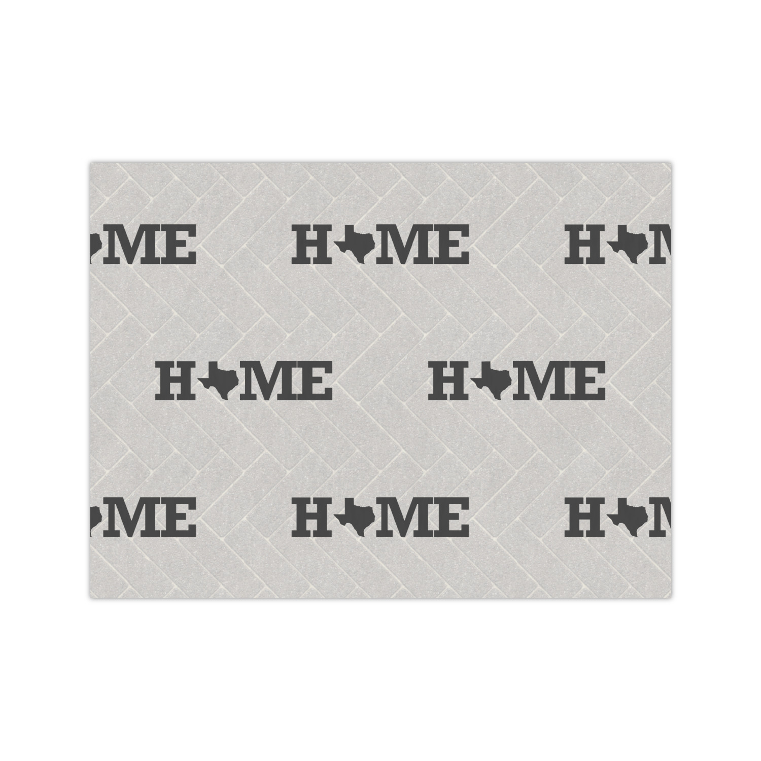 This design features a beatuiful graphic that spells out "Home" with your home state substituted for the "o". You are able to change the state to one of the 50 United States in our system. There is personalizable text above and below this with some ornate brackets on the top and bottom as well. The background is a subtle herringbone brick pattern that gives a nice homey touch. The color scheme is simply light and dark grey. This is the perfect design for home decor or a gift for a friend.