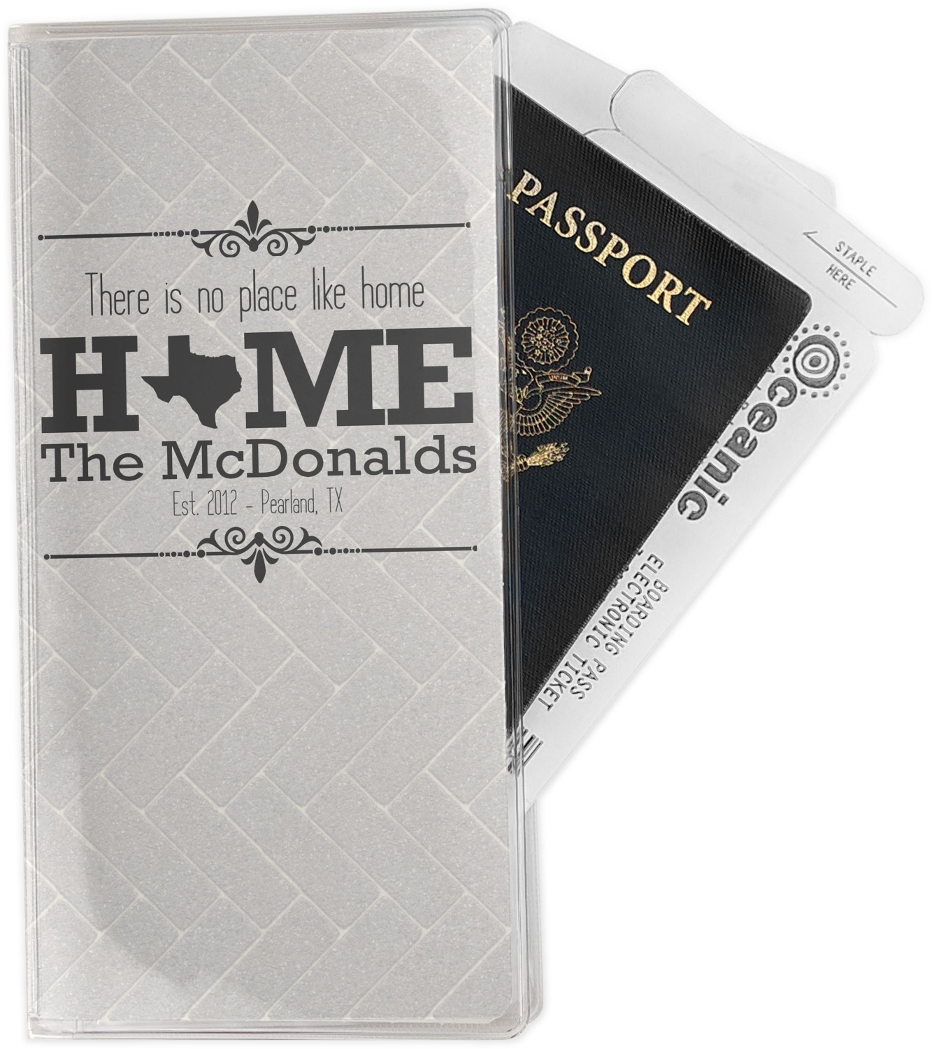 This document holder is really sturdy and has your personalized design inserted right behind all of your nifty pockets, so you can see it on the front and back covers. There are two large pockets and two shorter pockets inside. The larger pockets are tall enough to keep your boarding pass nice and straight. The smaller pockets (on top of the large pockets) are large enough to fit your passport, credit card, or ID.
