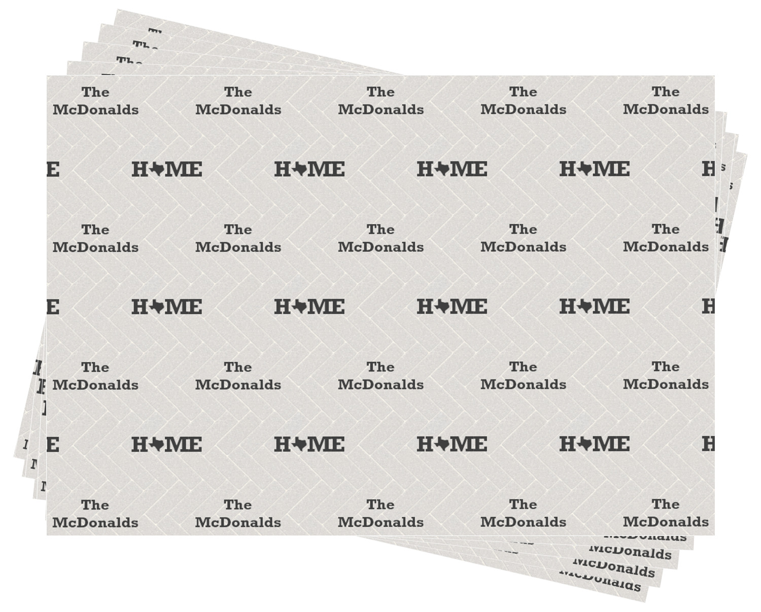 This design features a beatuiful graphic that spells out "Home" with your home state substituted for the "o". You are able to change the state to one of the 50 United States in our system. There is personalizable text above and below this with some ornate brackets on the top and bottom as well. The background is a subtle herringbone brick pattern that gives a nice homey touch. The color scheme is simply light and dark grey. This is the perfect design for home decor or a gift for a friend.