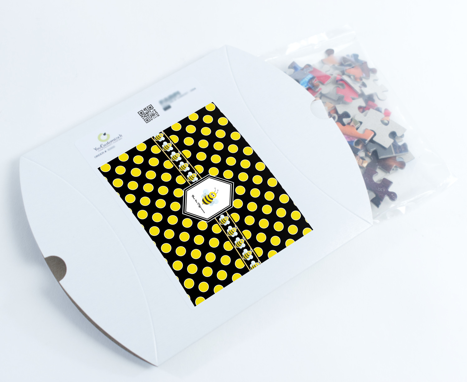 You can also upload your logo or art that you or your kids drew. To create more challenging jigsaw puzzles, you can create a pattern from with your logo or artwork. You can also add other elements such as text or personalization.