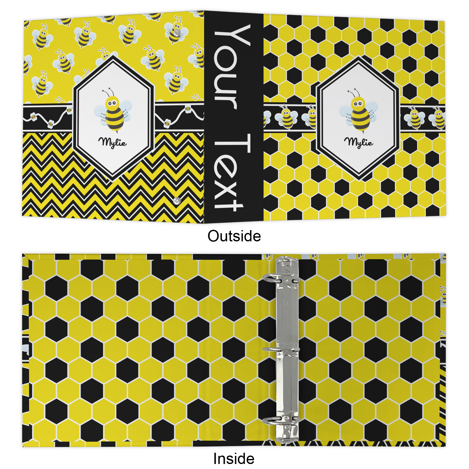 The outside is printed in 3 sections - front cover, spine and back cover - while the inside is printed in a full single print of your choice. The inside boasts a high quality nickel plated binder mechanism with a trigger opening function and is secured to the cardboard binder with posts and screws.