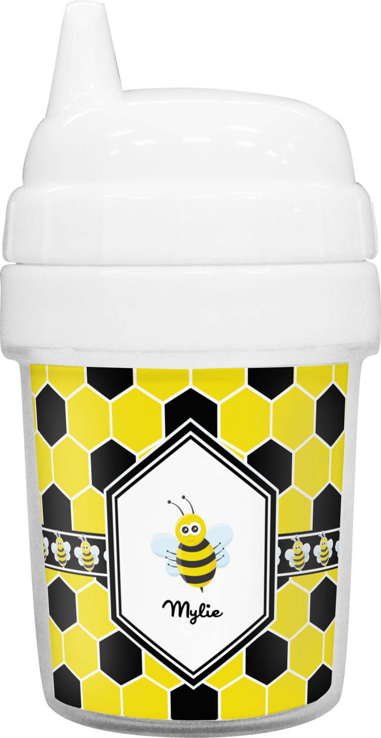 Our toddler cups are free of BPA, and have a twist-open lid so that you can easily fill and clean these cups for your young ones. Each cup also comes with a sippy nozzle to reduce spills. We offer these custom sippy cups in two different sizes; we have a baby sippy cup that holds 5 ounces, and a toddler sippy cup that holds 10 ounces. Your customization is printed on a premium glossy media insert that is placed within these toddler drinking cups.