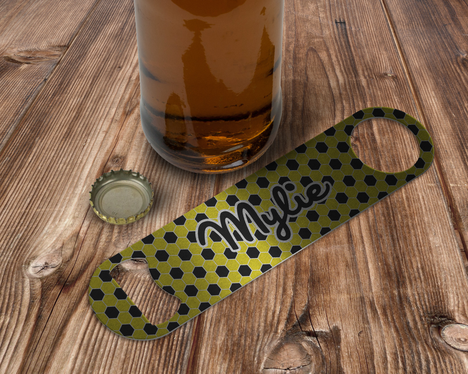 Stop struggling with the caps or your bottled beverages by purchasing one of our personalized bottle openers! These wrench-like custom bar blades are built to last. Customize one for your home's bar, or as a practical gift for a loved one!