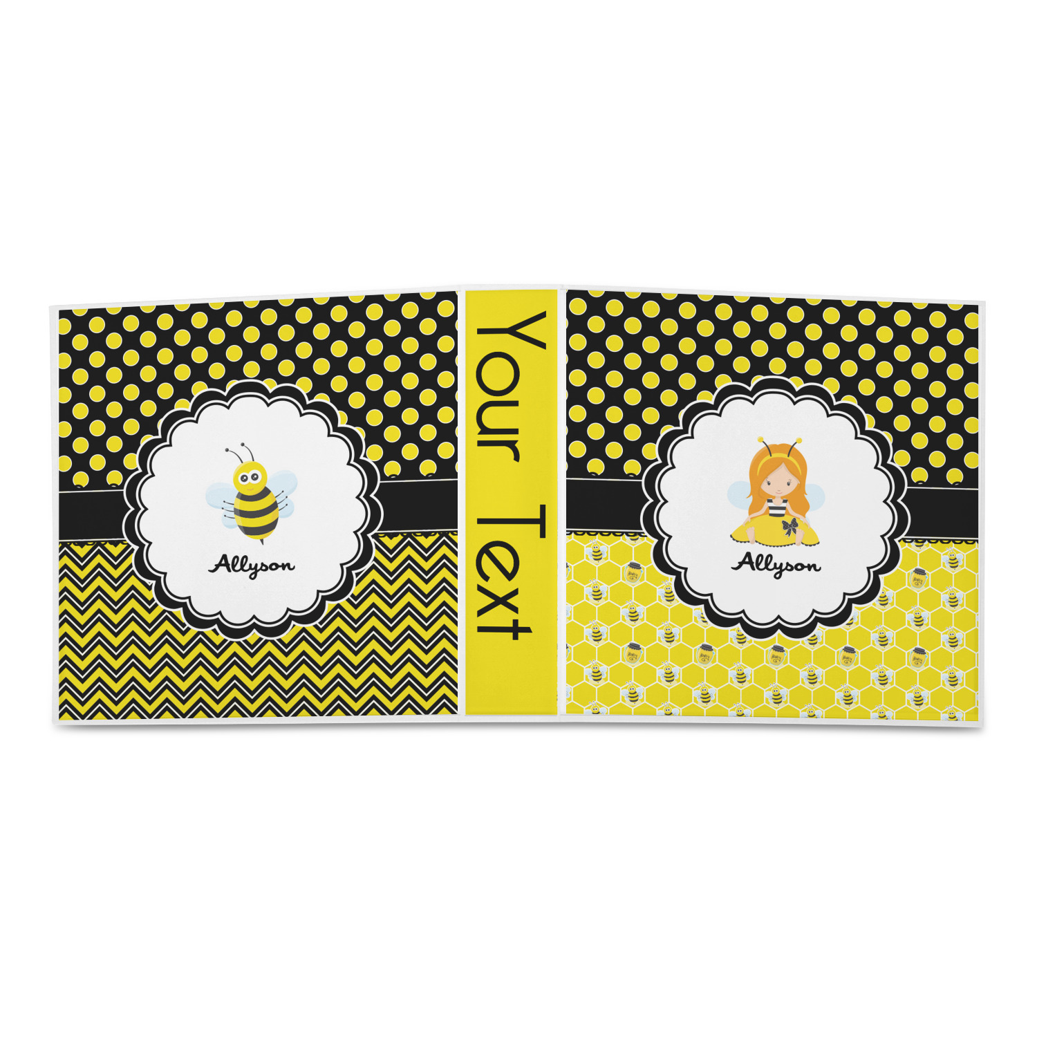 A wide lace black ribbon separates the pattern and connects a beautiful black trimmed white decorative label that provides a focal point for either a little bumble-bee or a bumble-bee obsessed girl and his/her name. As a special touch, personalize your little bumble-bee girl's hair and skin color.