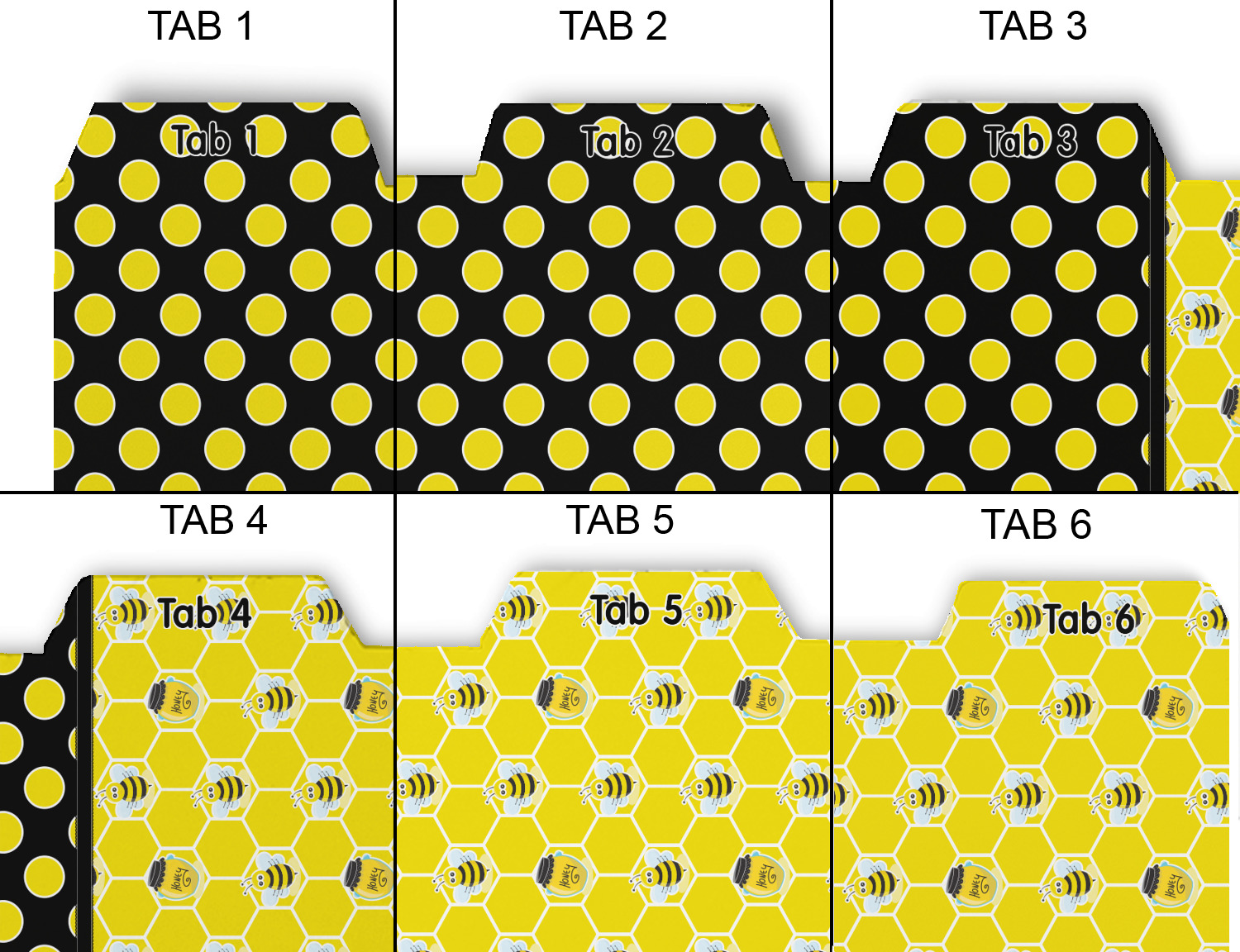Whether you use binders at school or at work, we have designs to suit all of them. Available in 5 or 6 tab sets, you are sure to find a set to suit your needs. The back of each one is white and can be used to take notes, write vital information on, etc.
