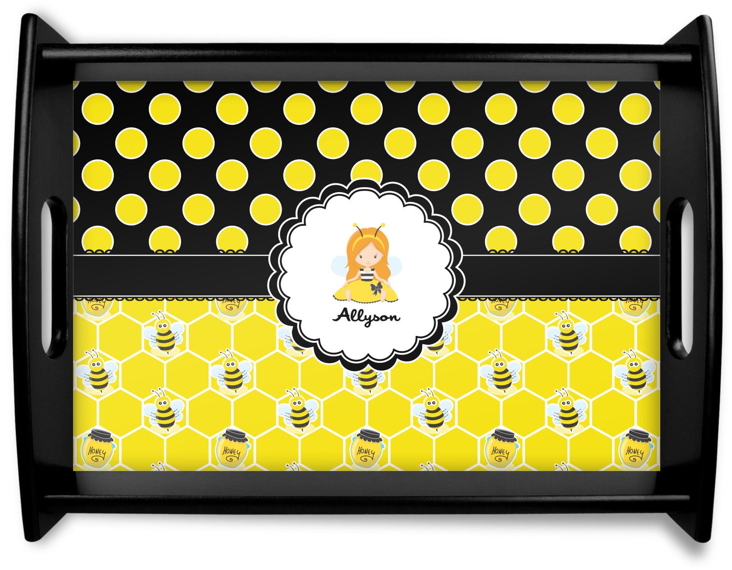 Our little bees have been hard at work and Winnie the Pooh would be jealous of this stash of honey. We used a playful polka dot pattern of black and yellow. On the bottom our bees have been hard at work making honey out of the honeycombs.