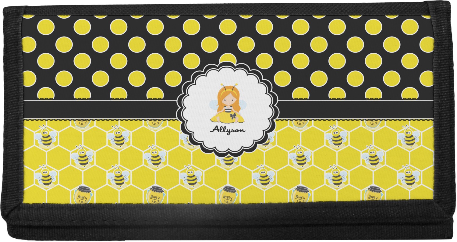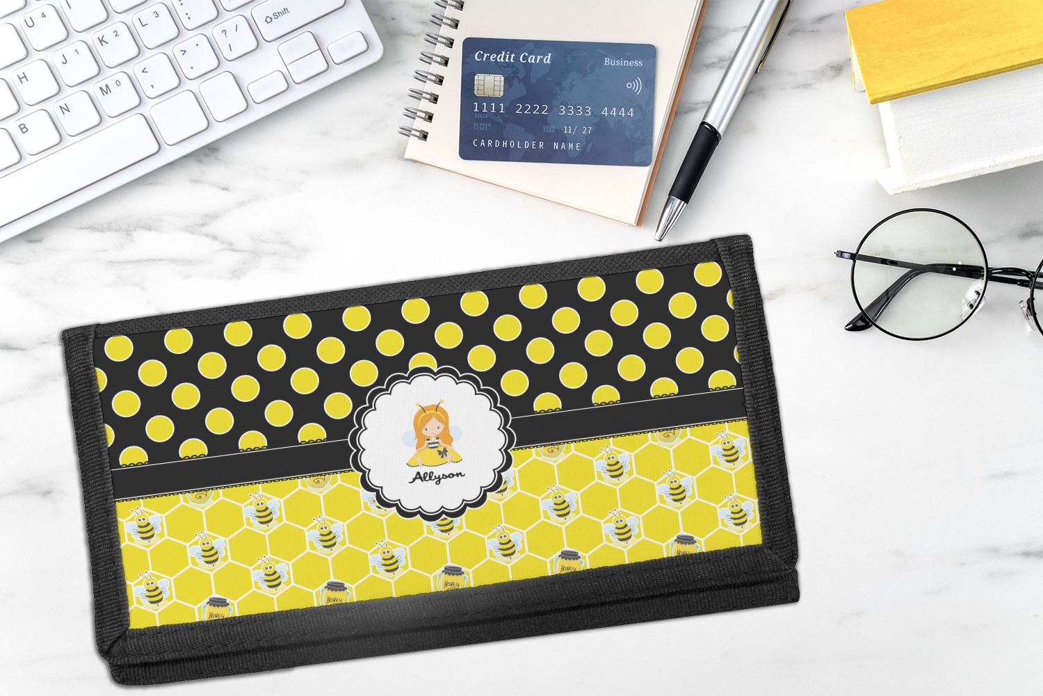 The checkbook cover is made of a durable canvas and the front flap is decorated with a vibrant design of your choosing. With 4 slots for credit cards or IDs, and 2 compartments for your checkbook register, cash, receipts, business cards, and more; this checkbook cover could easily double as a wallet.
