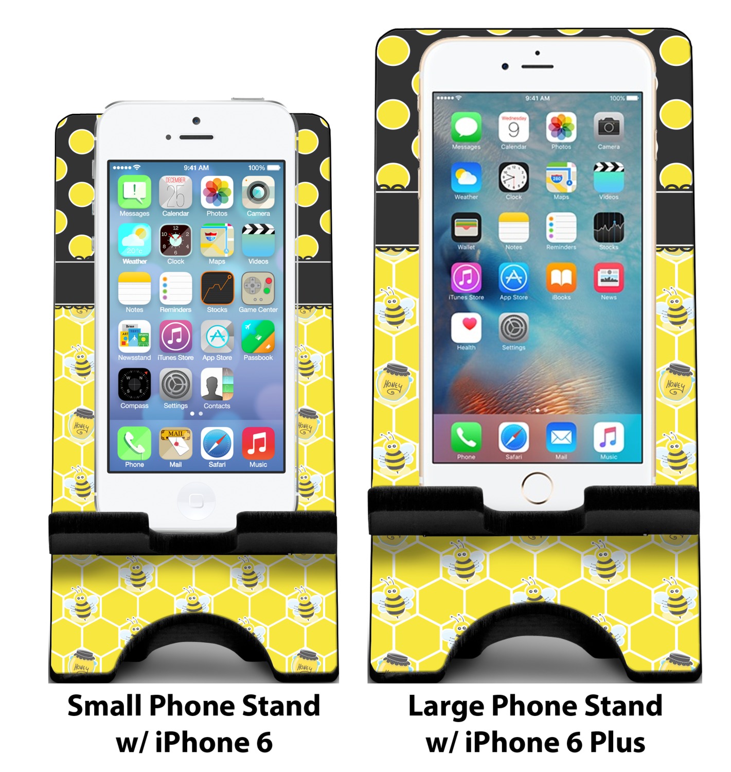 To meet your needs, we offer four variations of this IPhone stand. The backboard of the first version is shaped as a plain, yet sleek rectangle, and is available in two sizes. Our smaller size is approximately 4 by 3.25 by 7 inches, while the larger model is 4 by 3.77 by 8.5 inches. Alongside this model, we also provide you with a more decorative option. The upper part of our second version features a curved edge, for a classy, suave appearance. This phone holder is also sold in two sizes: a smaller version, which is 4 by 3.25 by 7 inches, and our larger model, which is 4 by 3.77 by 8.5 inches. Both models will support large phones, but the larger model is better if you wish to proudly display your personalized design.