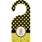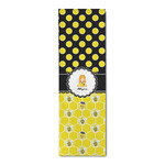 A wide lace black ribbon separates the pattern and connects a beautiful black trimmed white decorative label that provides a focal point for either a little bumble-bee or a bumble-bee obsessed girl and his/her name. As a special touch, personalize your little bumble-bee girl's hair and skin color.