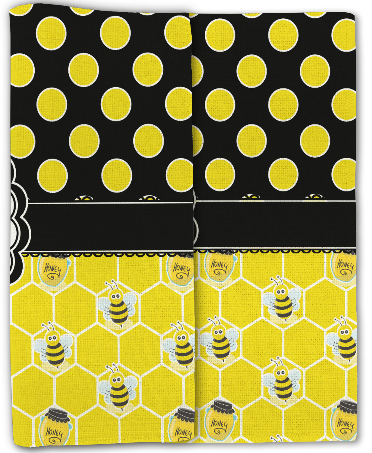 Our little bees have been hard at work and Winnie the Pooh would be jealous of this stash of honey. We used a playful polka dot pattern of black and yellow. On the bottom our bees have been hard at work making honey out of the honeycombs.