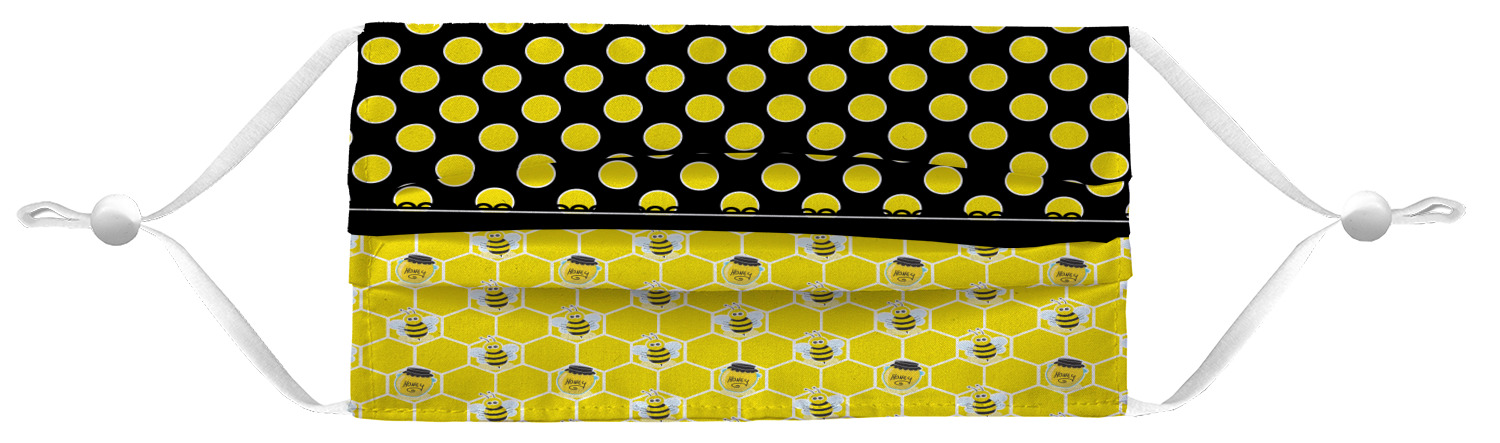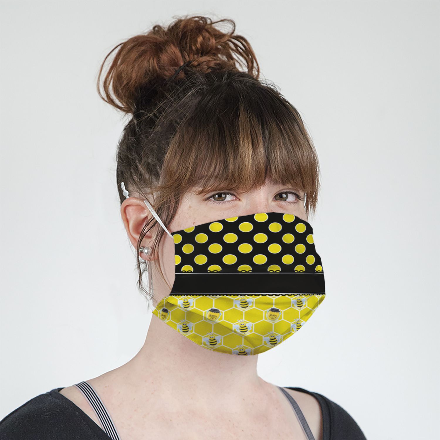 These fun face masks are 7" wide and 3.5" high. They feature pleats, adjustable ear loops, and are made with two layers of fabric. The top layer where your design is printed is a breathable polyester sheeting, while the inside layer is a soft microfiber polyester