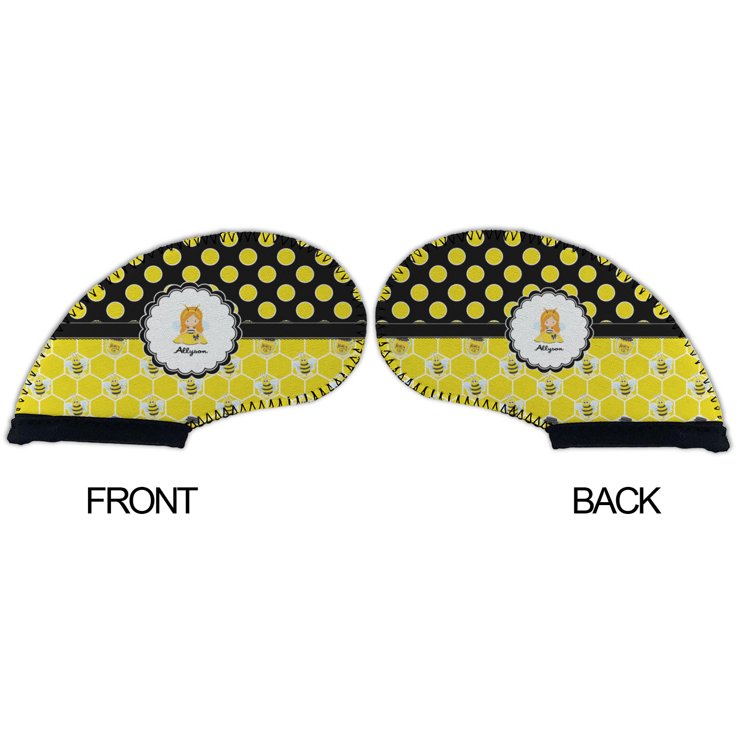 A wide lace black ribbon separates the pattern and connects a beautiful black trimmed white decorative label that provides a focal point for either a little bumble-bee or a bumble-bee obsessed girl and his/her name. As a special touch, personalize your little bumble-bee girl's hair and skin color.