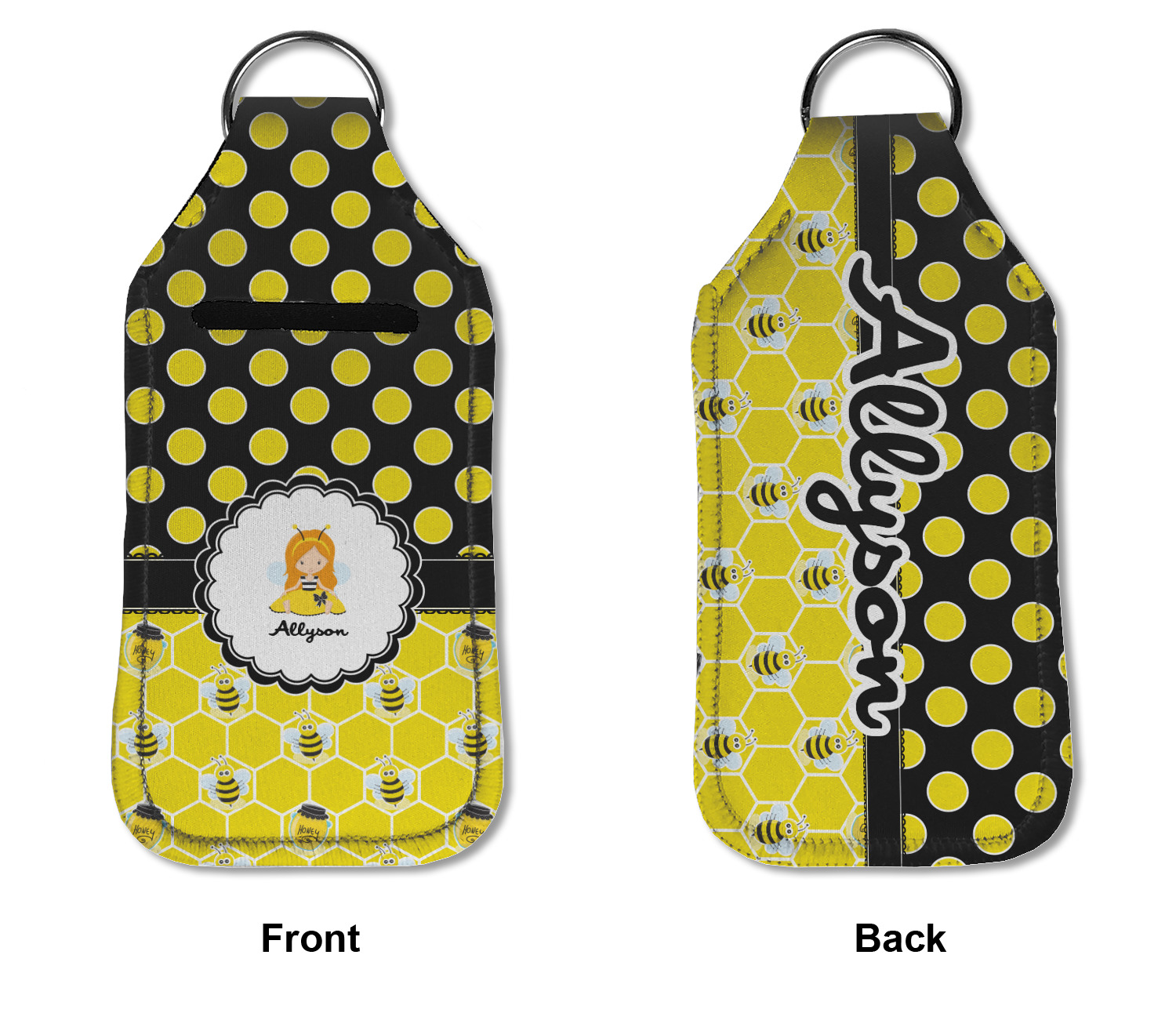 Each hand sanitizer holder comes with its own empty travel-sized, refillable hand sanitizer sure to fit snug in your customized sanitizer case! Our hand sanitizer cases are a durable, yet soft neoprene material sure to last any daily activities or travel agenda. Customize and personalize a hand sanitizer bottle holder with one of our two sizes - small (4.25" x 2.25") or large (5.5" x 2.5"). Each travel sanitizer holder comes with a keyring for attachment on bags, keys, or more!