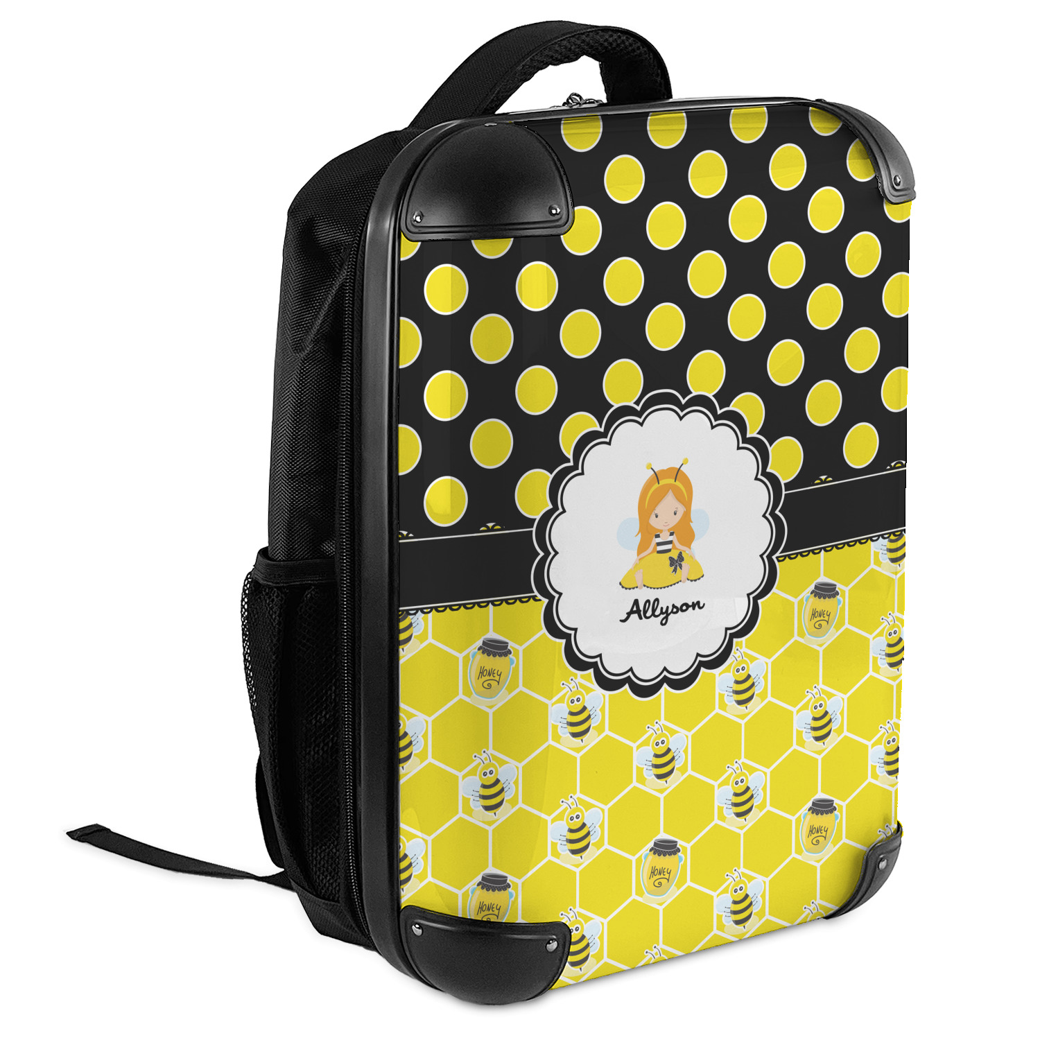 A wide lace black ribbon separates the pattern and connects a beautiful black trimmed white decorative label that provides a focal point for either a little bumble-bee or a bumble-bee obsessed girl and his/her name. As a special touch, personalize your little bumble-bee girl's hair and skin color.