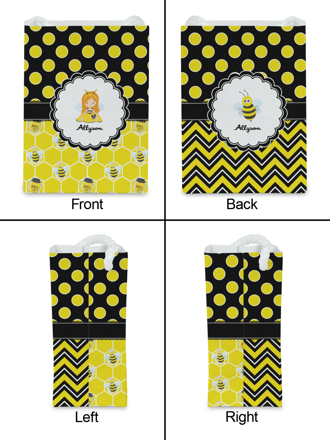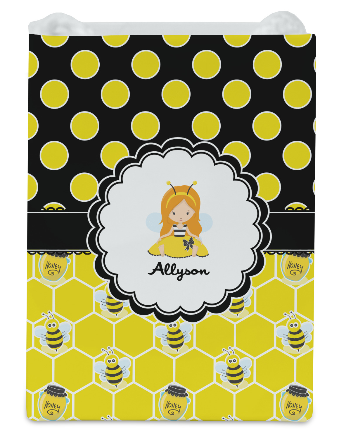Our little bees have been hard at work and Winnie the Pooh would be jealous of this stash of honey. We used a playful polka dot pattern of black and yellow. On the bottom our bees have been hard at work making honey out of the honeycombs.