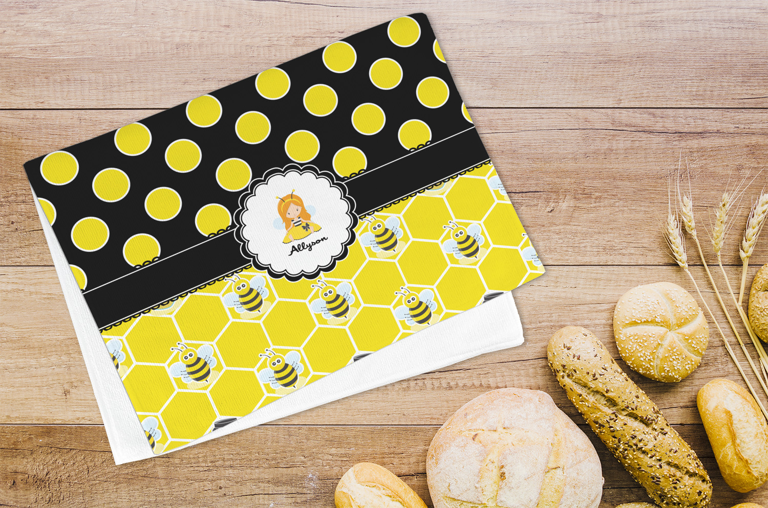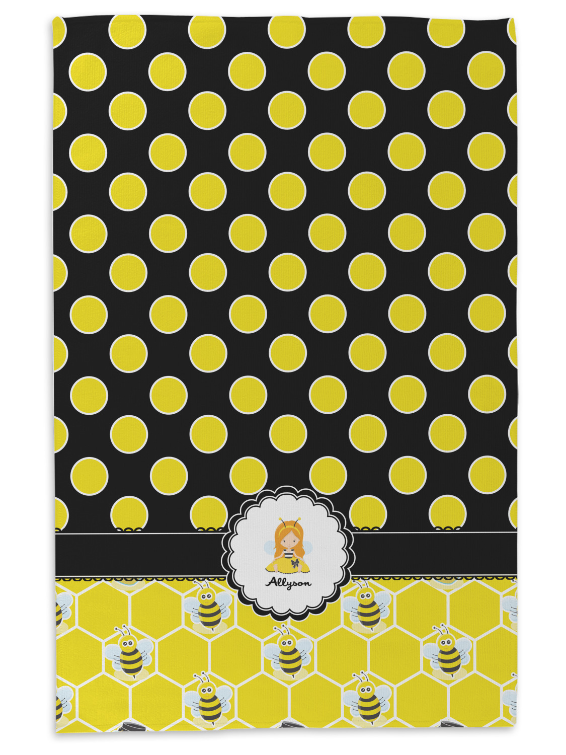 Our little bees have been hard at work and Winnie the Pooh would be jealous of this stash of honey. We used a playful polka dot pattern of black and yellow. On the bottom our bees have been hard at work making honey out of the honeycombs.