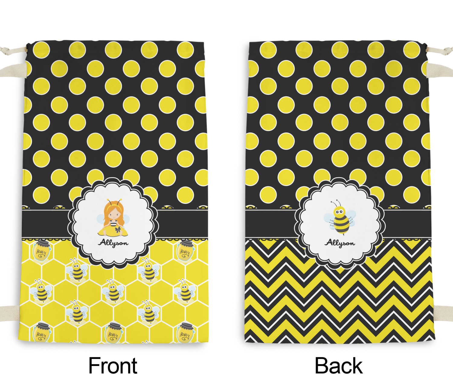Our little bees have been hard at work and Winnie the Pooh would be jealous of this stash of honey. We used a playful polka dot pattern of black and yellow. On the bottom our bees have been hard at work making honey out of the honeycombs.