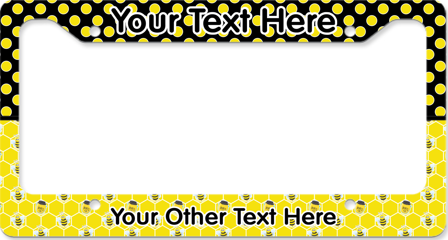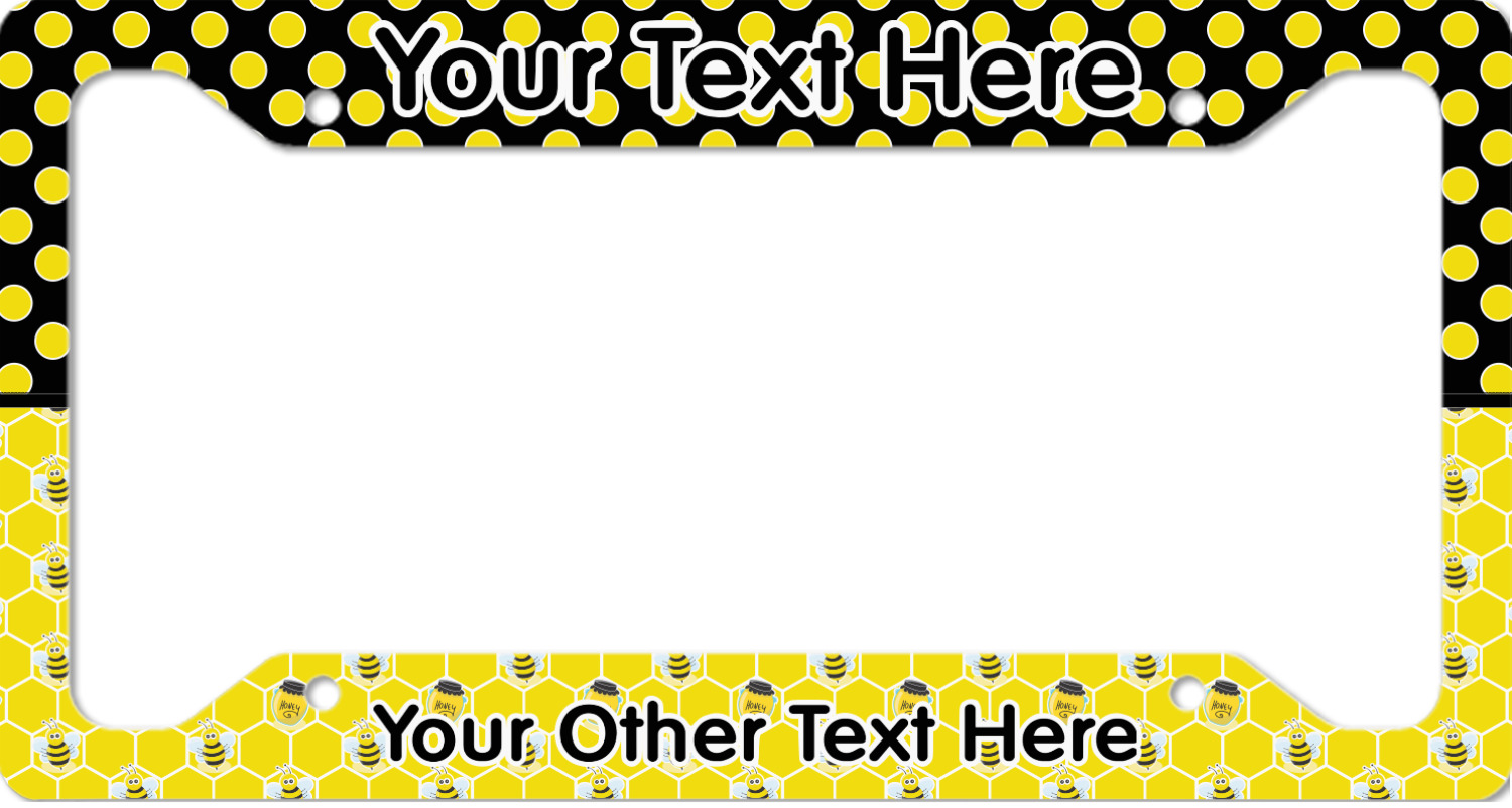 Each customizable license plate frame is made from a fine, yet sturdy aluminum material that measures approximately 6.5 x 12.15 inches, accommodating most standard license plates. The thickness allows the license plate frame to adhere completely to your license plate for a seamless look. We carry 3 styles of license plate frames to customize - Style A has texts on top and bottom, Style B offers texts on top and bottom as well as a full fill bottom border, and Style C offers text at the bottom only. The personalized license plate frame comes with four mounting holes for easy installation! We print each custom design across the frame with a glossy finish.