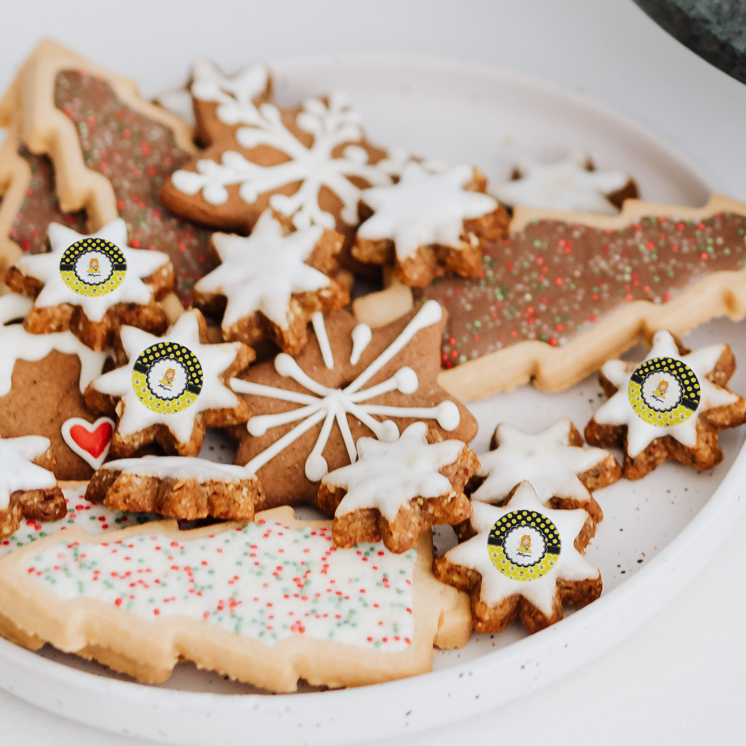 Your customized cookie toppers can be placed on top of any dessert with an icing top.The icing helps adhere the cookie topper to the dessert.