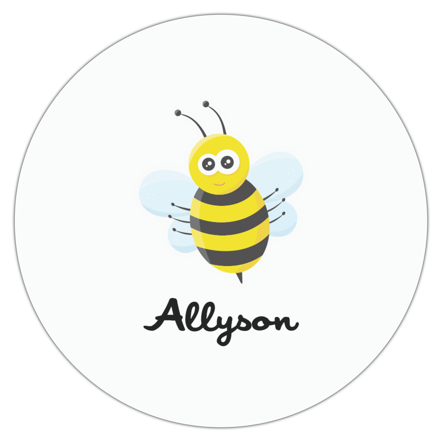 A wide lace black ribbon separates the pattern and connects a beautiful black trimmed white decorative label that provides a focal point for either a little bumble-bee or a bumble-bee obsessed girl and his/her name. As a special touch, personalize your little bumble-bee girl's hair and skin color.