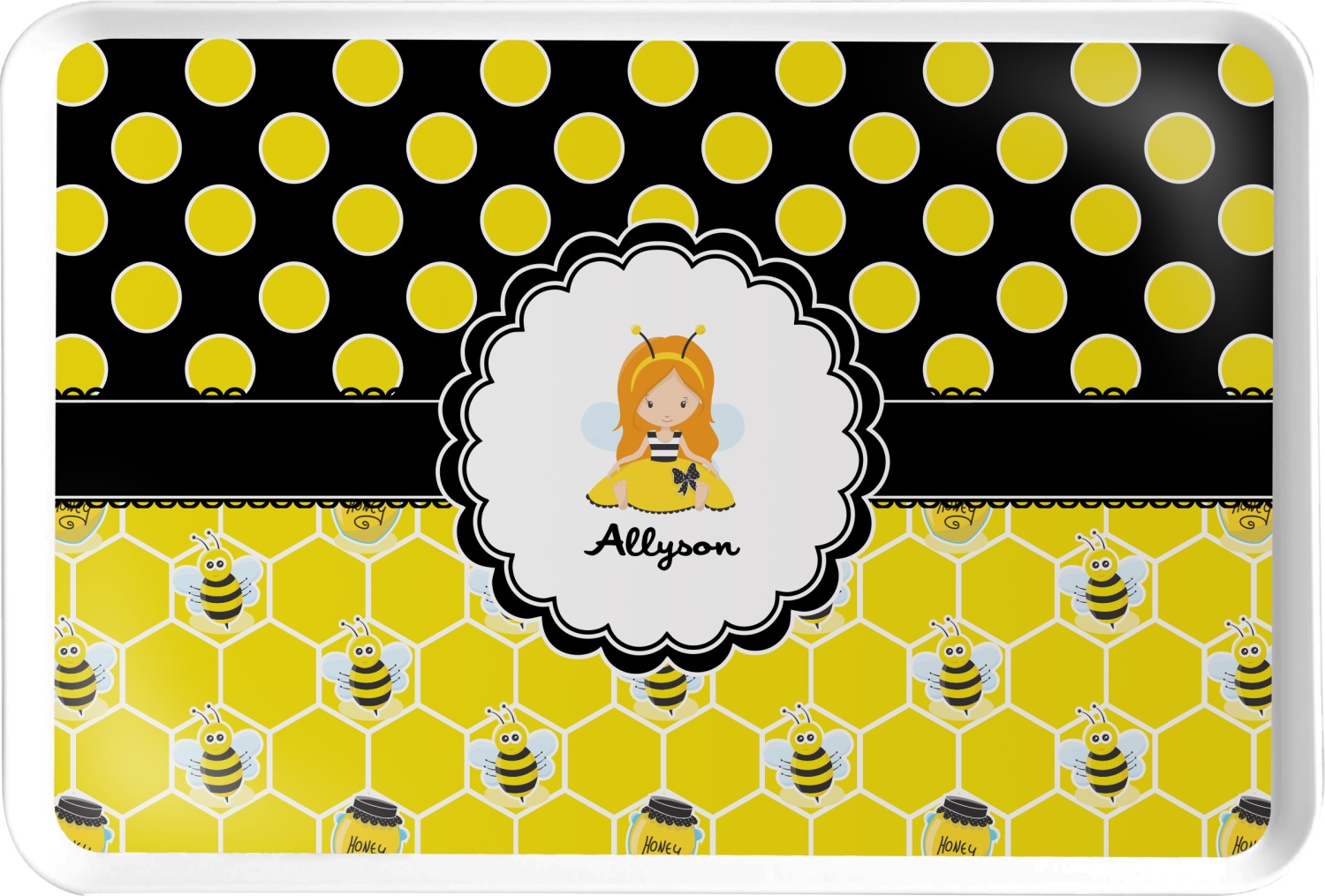 Made from a heavy melamine, these decorative trays are break resistant and are BPA free. At 14" x 9.25", these serving dishes are spacious enough to accommodate several drinks, bowls, or more. The tray features ridges underneath that allow for a sturdy stance upon any table or counter-top. We display your customization at the bottom of the tray's interior, while the remaining sides of the tray are a chic white.