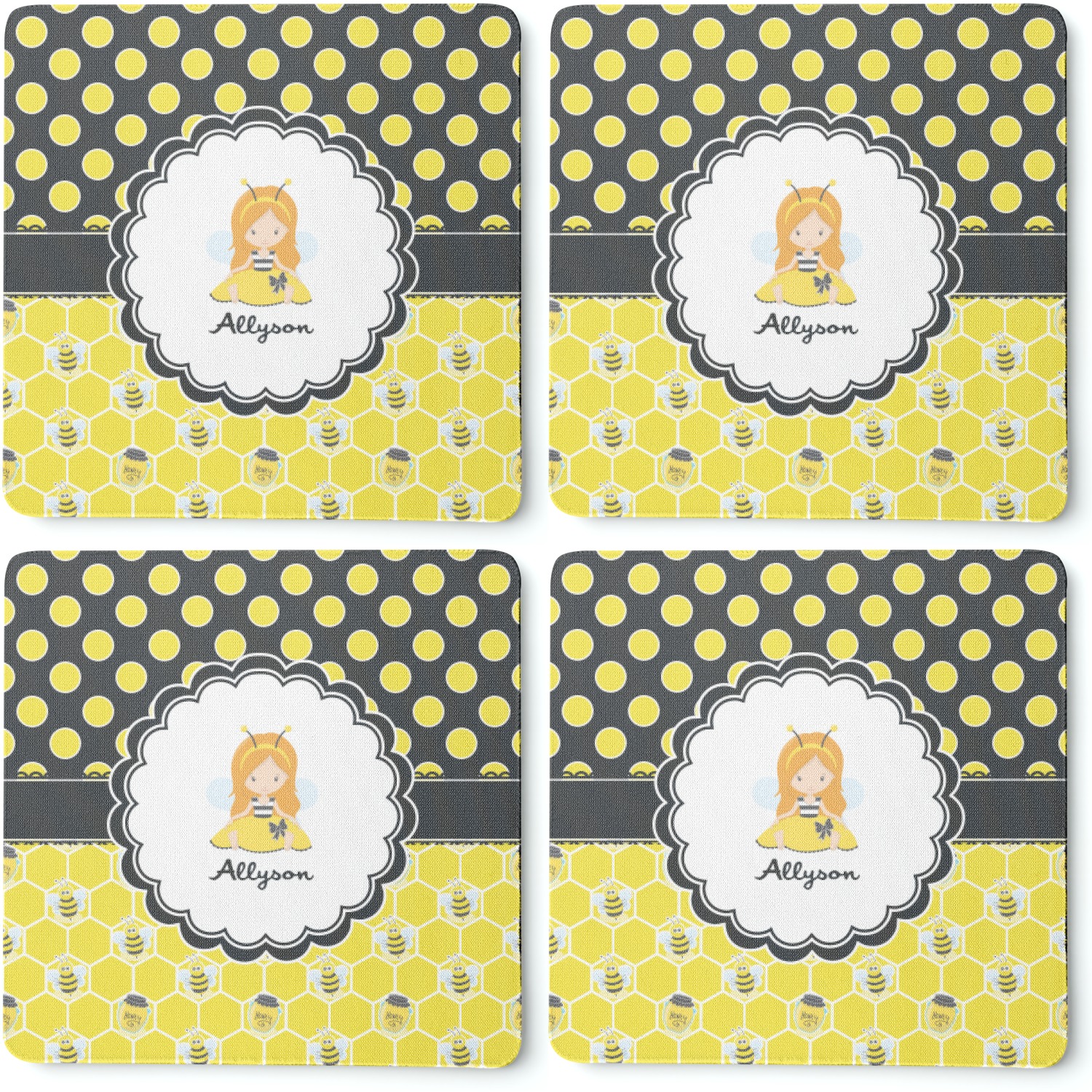 These drink coasters have a smooth, polyester top and a textured, rubber backing on its bottom. The non-slip rubber backing underneath works to keep any spills at bay. At 4 by 4 by 0.25 inches thick, these custom coasters are a suitable size for most drinkware. Your personalization is displayed atop the face of the cup coaster. We sell these rubber coasters in two different shapes: square and round. You can buy each shape as singulars or as a set of 4.