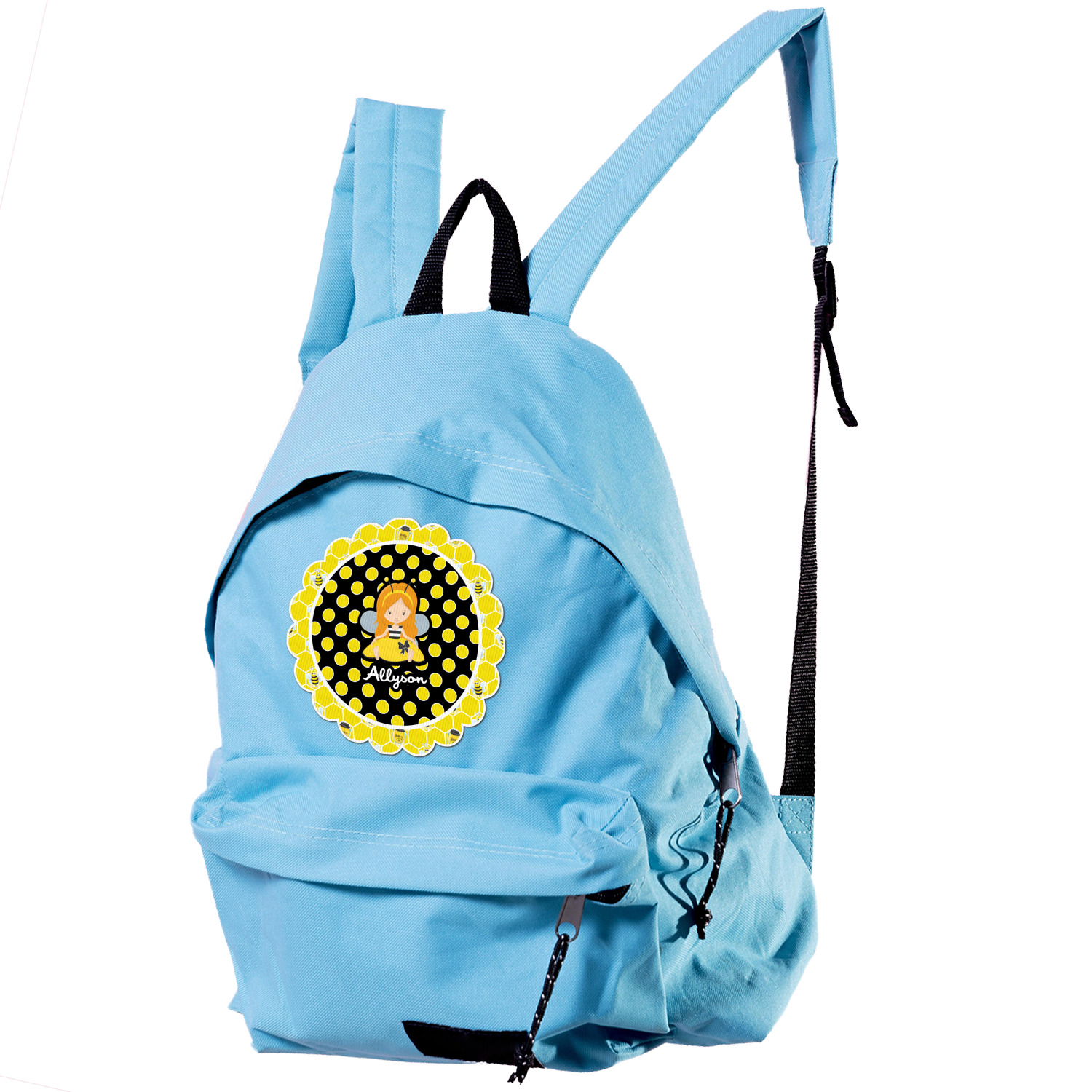 A wide lace black ribbon separates the pattern and connects a beautiful black trimmed white decorative label that provides a focal point for either a little bumble-bee or a bumble-bee obsessed girl and his/her name. As a special touch, personalize your little bumble-bee girl's hair and skin color.