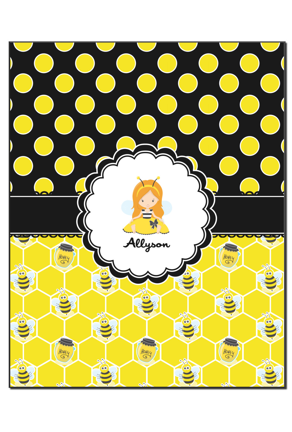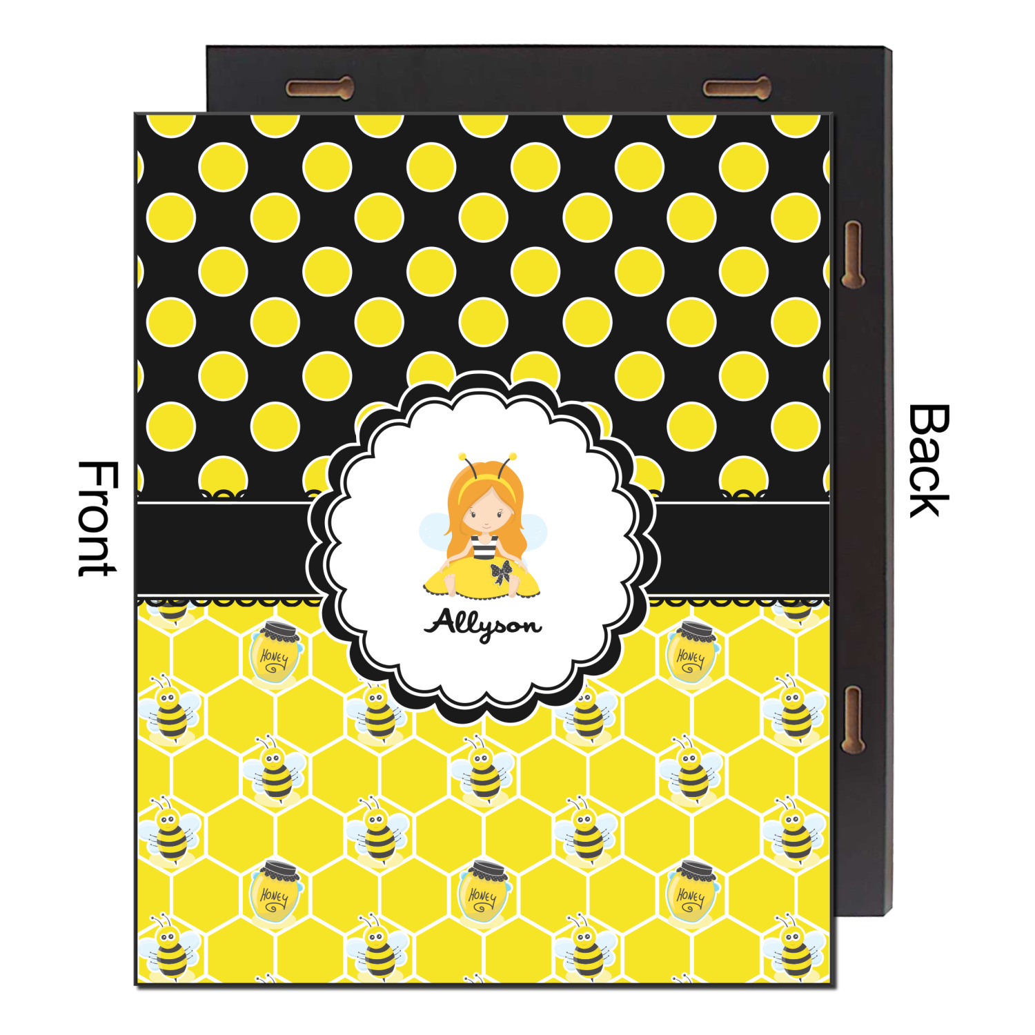 A wide lace black ribbon separates the pattern and connects a beautiful black trimmed white decorative label that provides a focal point for either a little bumble-bee or a bumble-bee obsessed girl and his/her name. As a special touch, personalize your little bumble-bee girl's hair and skin color.