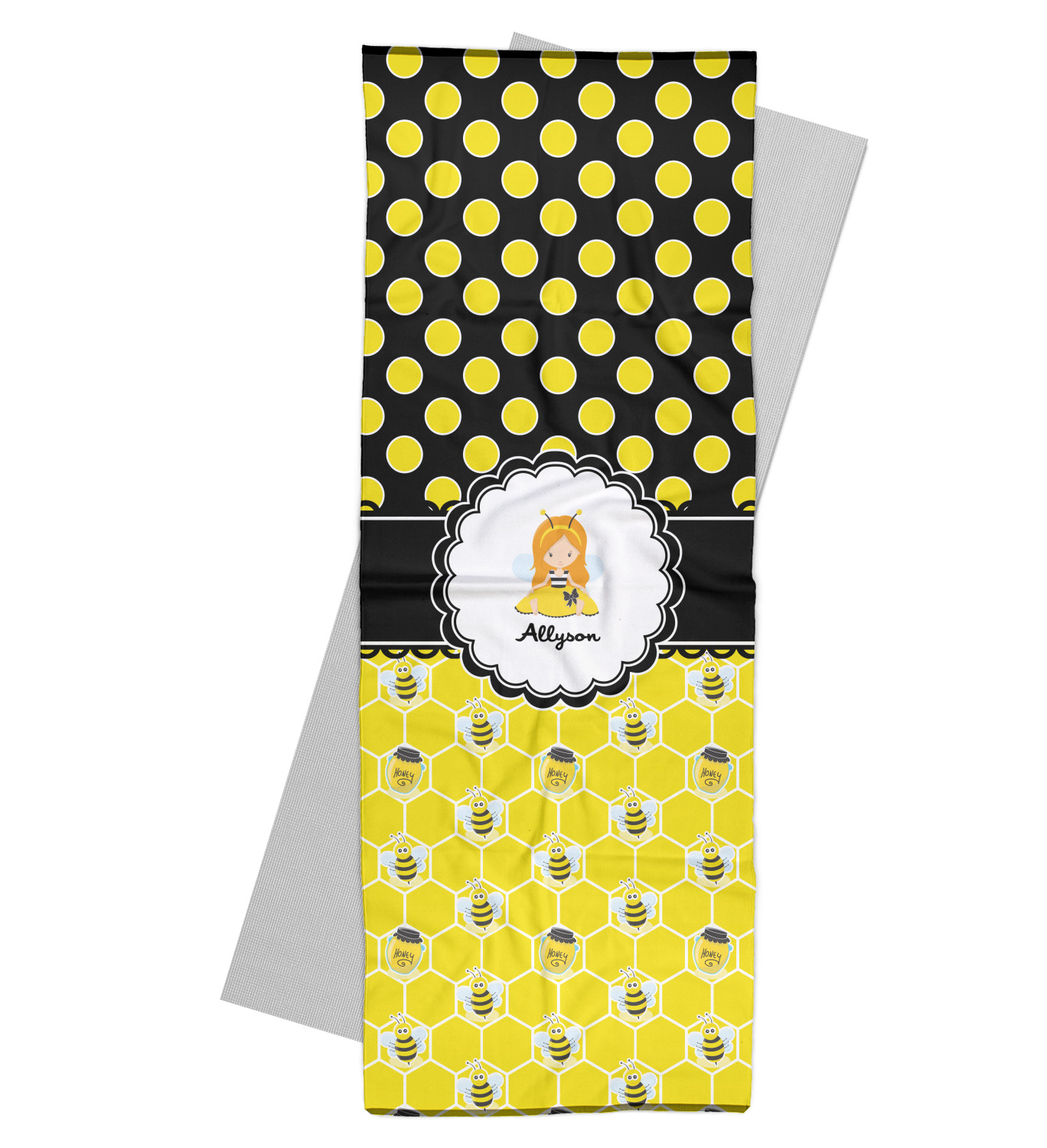 Our little bees have been hard at work and Winnie the Pooh would be jealous of this stash of honey. We used a playful polka dot pattern of black and yellow. On the bottom our bees have been hard at work making honey out of the honeycombs.