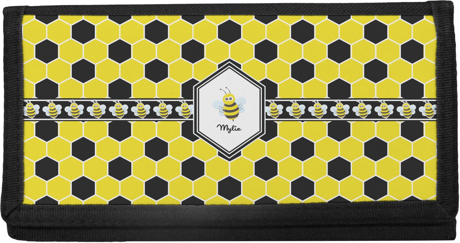 The checkbook cover is made of a durable canvas and the front flap is decorated with a vibrant design of your choosing. With 4 slots for credit cards or IDs, and 2 compartments for your checkbook register, cash, receipts, business cards, and more; this checkbook cover could easily double as a wallet.