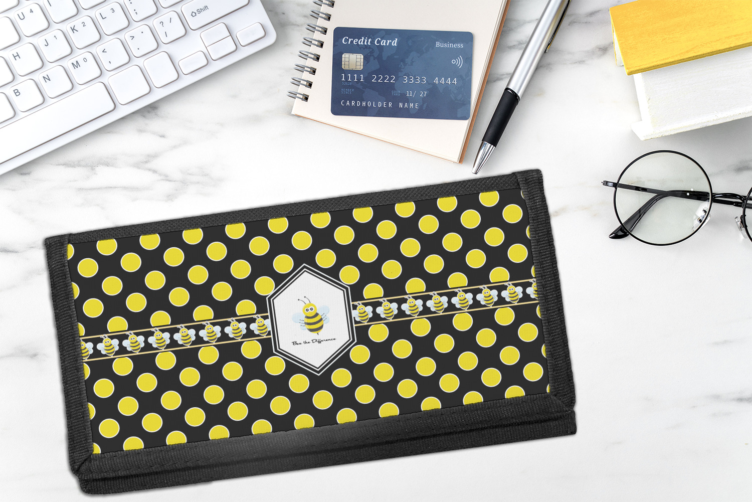 The checkbook cover is made of a durable canvas and the front flap is decorated with a vibrant design of your choosing. With 4 slots for credit cards or IDs, and 2 compartments for your checkbook register, cash, receipts, business cards, and more; this checkbook cover could easily double as a wallet.