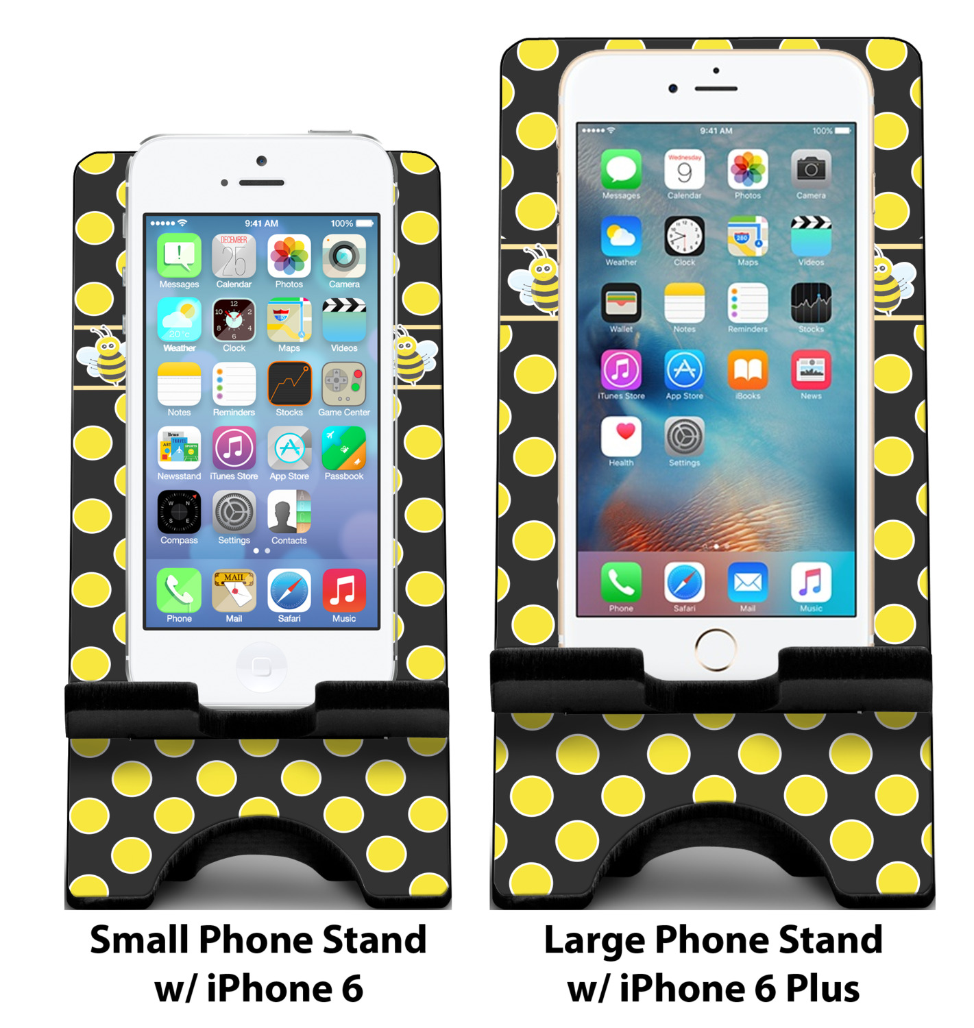 To meet your needs, we offer four variations of this IPhone stand. The backboard of the first version is shaped as a plain, yet sleek rectangle, and is available in two sizes. Our smaller size is approximately 4 by 3.25 by 7 inches, while the larger model is 4 by 3.77 by 8.5 inches. Alongside this model, we also provide you with a more decorative option. The upper part of our second version features a curved edge, for a classy, suave appearance. This phone holder is also sold in two sizes: a smaller version, which is 4 by 3.25 by 7 inches, and our larger model, which is 4 by 3.77 by 8.5 inches. Both models will support large phones, but the larger model is better if you wish to proudly display your personalized design.