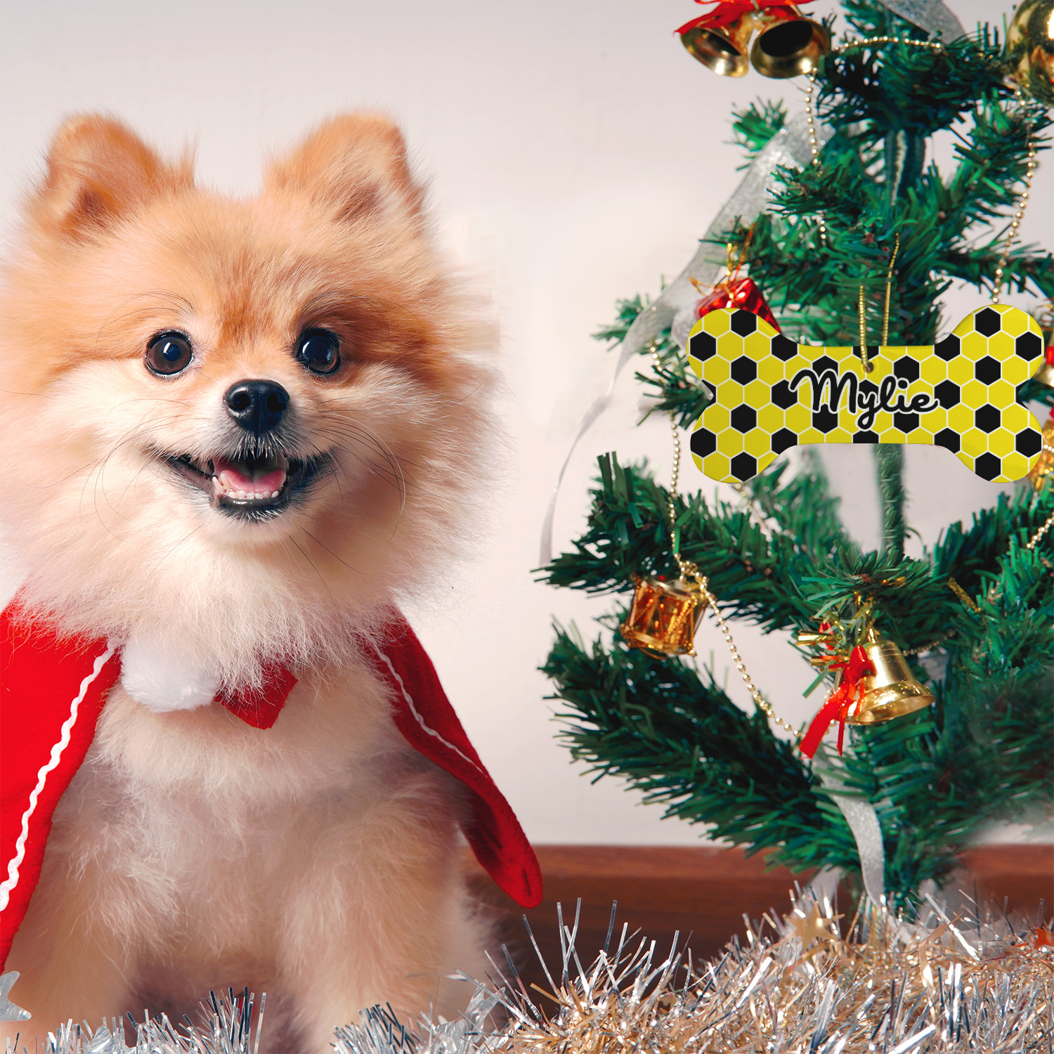 Pets are part of the family, too! Show off your puppy love by creating a personalized ornament for them this Christmas! You'll have their tails wagging hanging up their own custom dog bone ornament! Our customizable ornaments are more than just decorations for the holidays. Use the dog ornament as a nameplate, unique photo frame, or more! Start personalizing your dog ornament today with our online design studio. We offer customizable designs, or you can upload a photo for us to print!