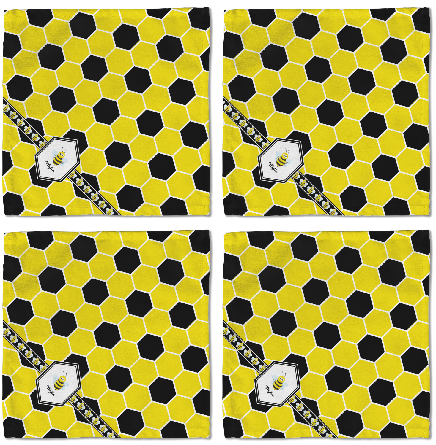 There is no lack of sweetness with this honeycomb design. Our cute little bees have been hard at work just for you. The traditional yellow, black and white bumble bee colors have been used to form the honeycomb pattern.