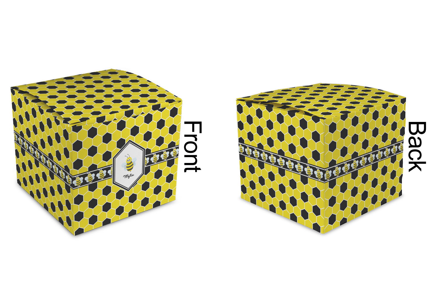 These cubic favor boxes are printed in full color on premium heavyweight cardstock that has a smooth semi-gloss finish.
