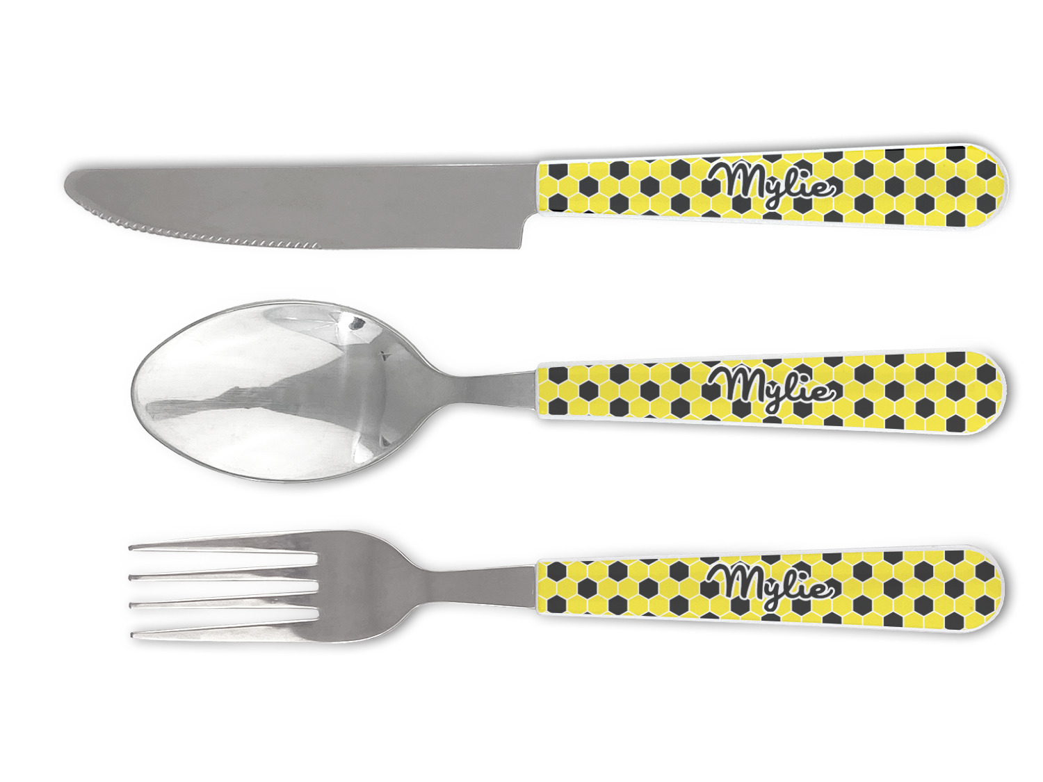One of those items we all use on a daily basis and never give it much thought - cutlery. Having your own customized set of cutlery adds that special touch. A great addition to our custom plates and drinking pint glasses, this flatware set can be made in the same patterns to match.