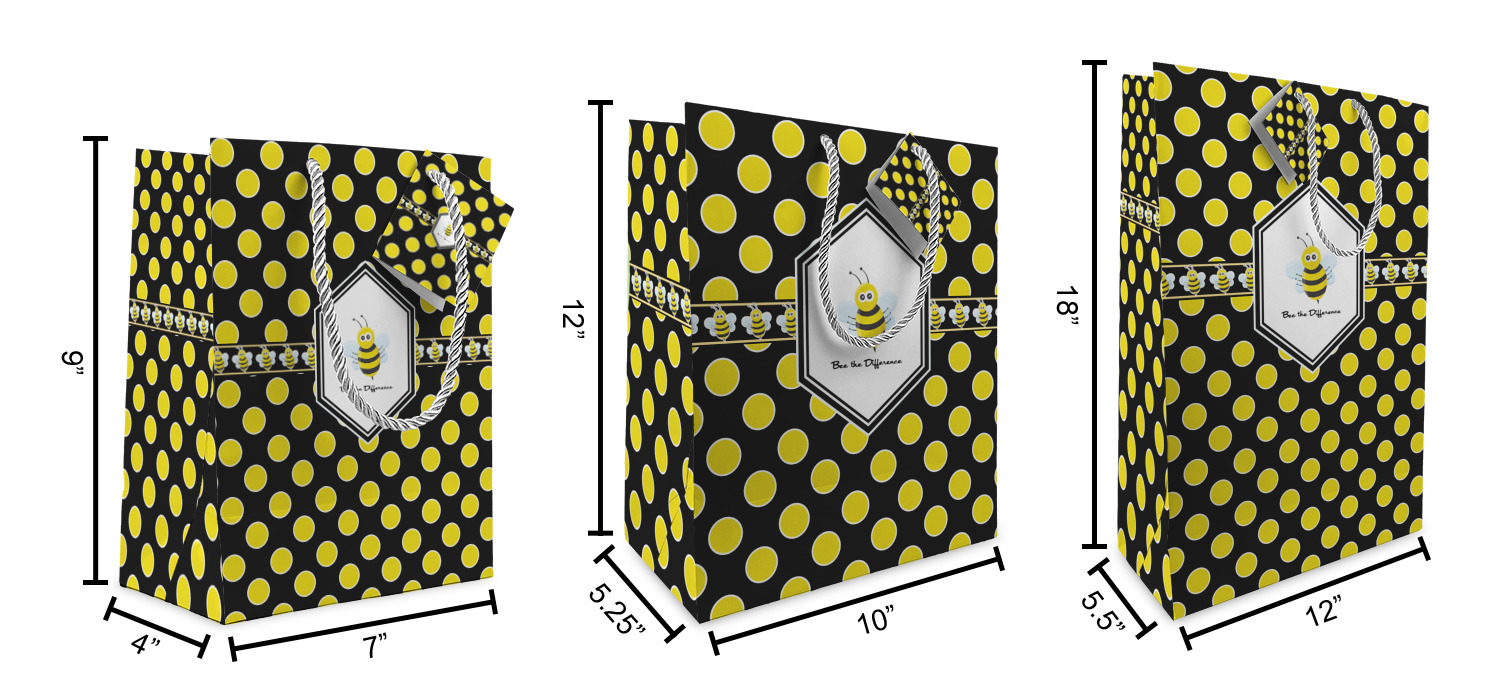 These custom gift bags come in your choice of 3 sizes. Their dimensions are below: