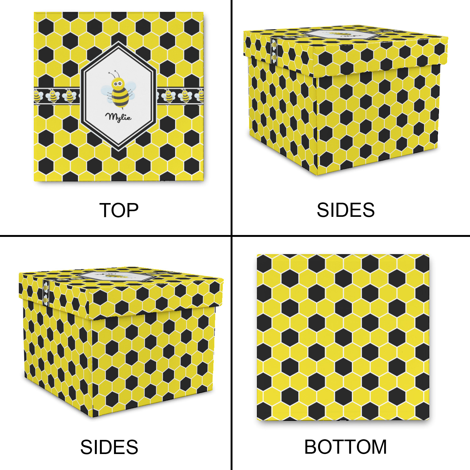 There is no lack of sweetness with this honeycomb design. Our cute little bees have been hard at work just for you. The traditional yellow, black and white bumble bee colors have been used to form the honeycomb pattern.
