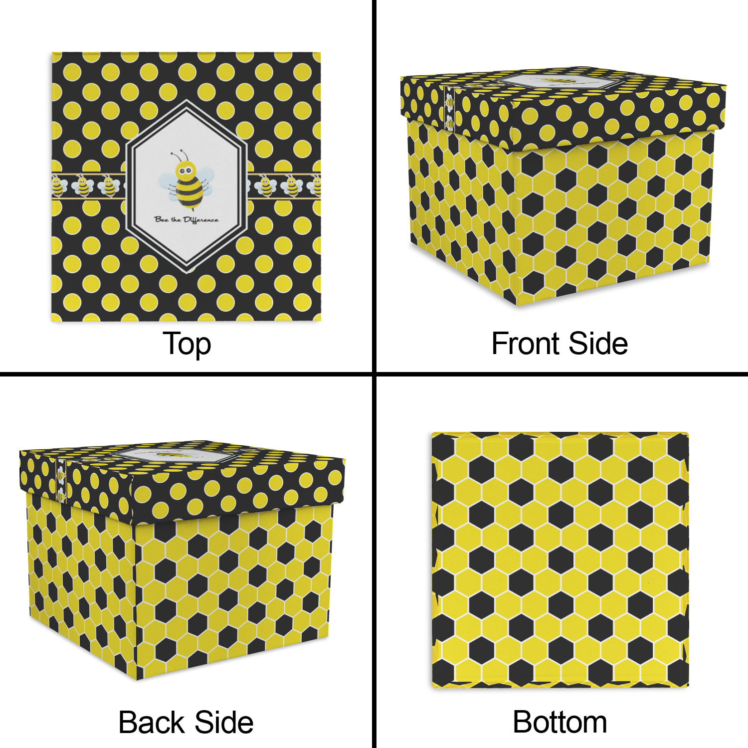 There is no lack of sweetness with this honeycomb design. Our cute little bees have been hard at work just for you. The traditional yellow, black and white bumble bee colors have been used to form the honeycomb pattern.