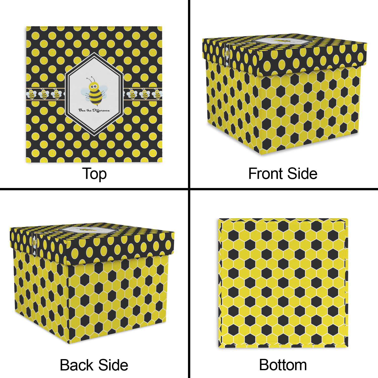 There is no lack of sweetness with this honeycomb design. Our cute little bees have been hard at work just for you. The traditional yellow, black and white bumble bee colors have been used to form the honeycomb pattern.