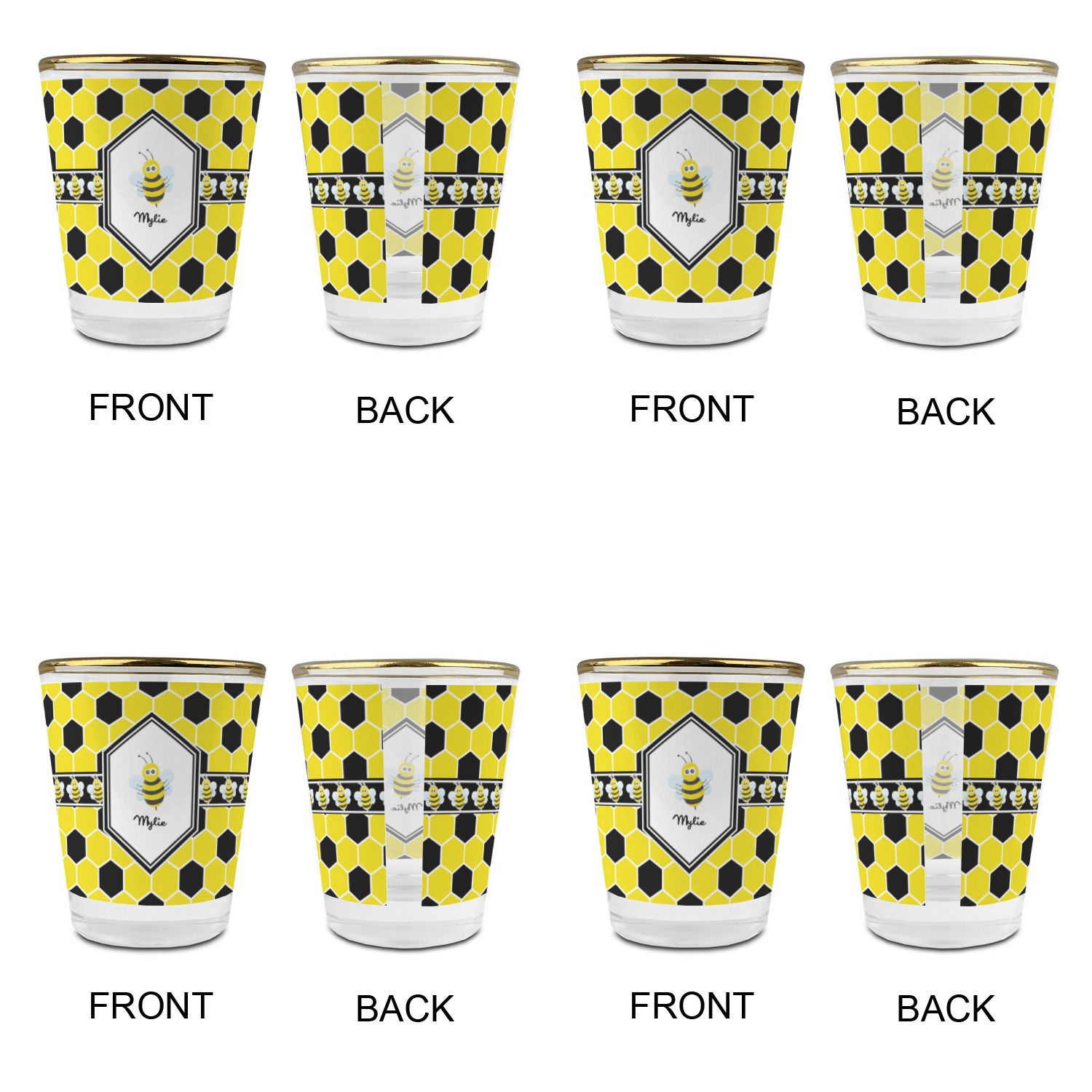 Made with frosted glass, these shot glasses are printed in full color with the design of your choice. They are a standard 1.5oz shot glass and are 2.4" tall. The print is wrapped around the shot glass in a full wrap and boldly displays your customization.