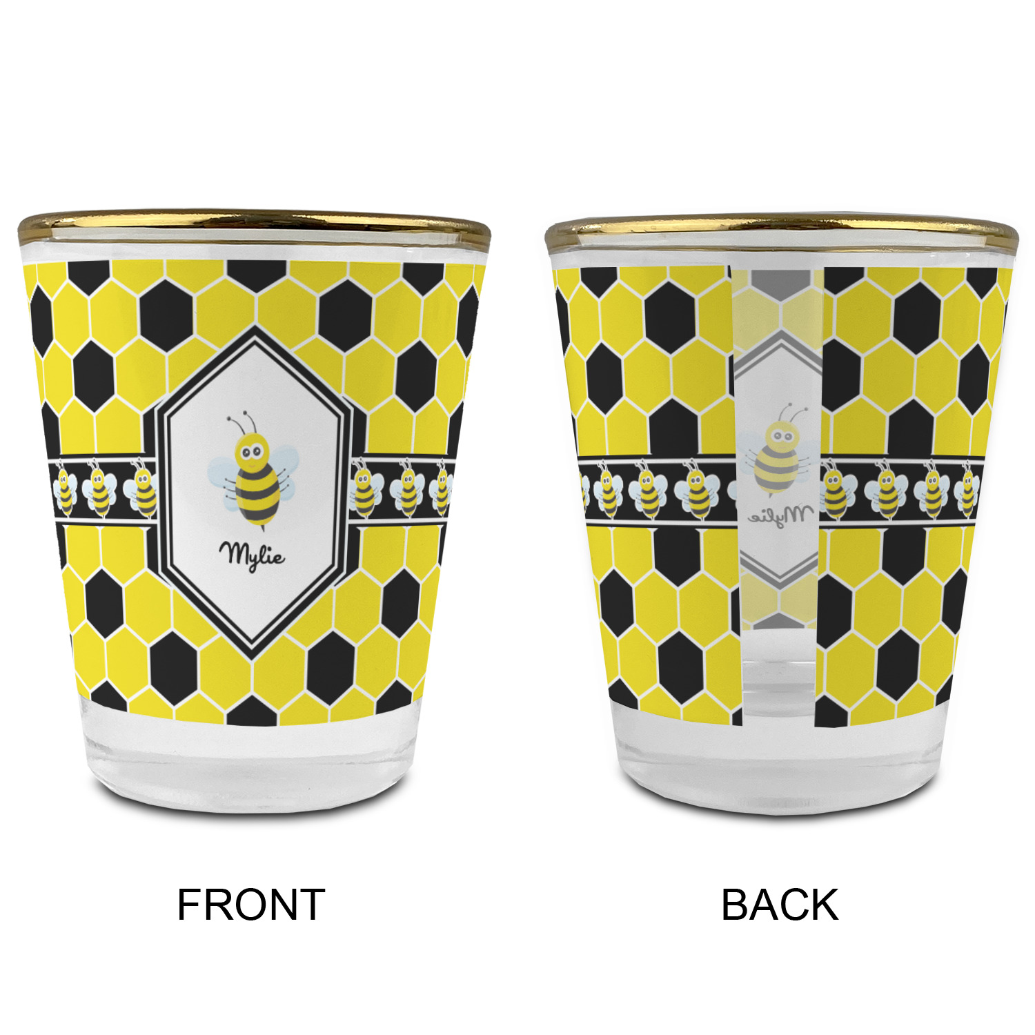 Made with frosted glass, these shot glasses are printed in full color with the design of your choice. They are a standard 1.5oz shot glass and are 2.4" tall. The print is wrapped around the shot glass in a full wrap and boldly displays your customization.