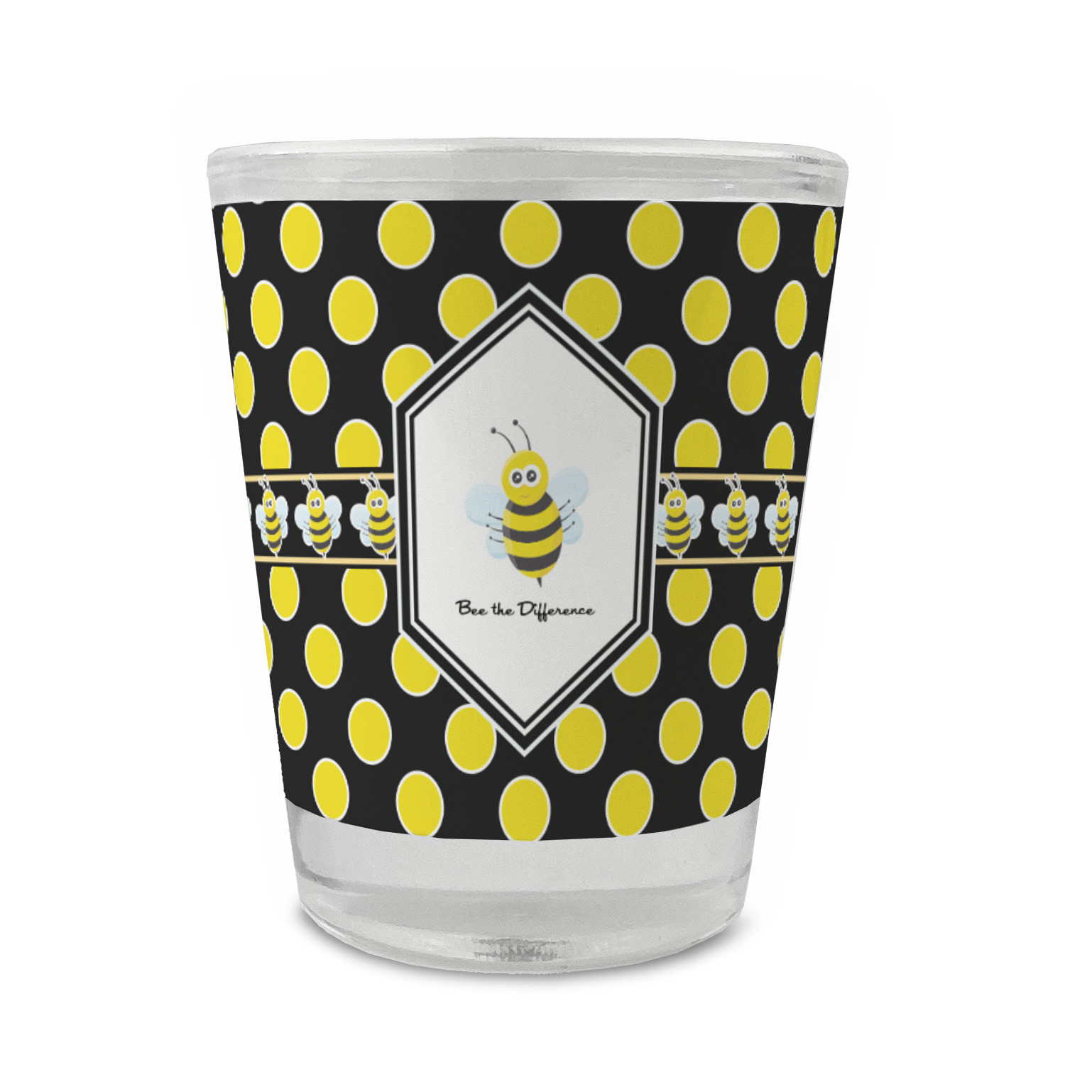 Made with frosted glass, these shot glasses are printed in full color with the design of your choice. They are a standard 1.5oz shot glass and are 2.4" tall. The print is wrapped around the shot glass in a full wrap and boldly displays your customization.