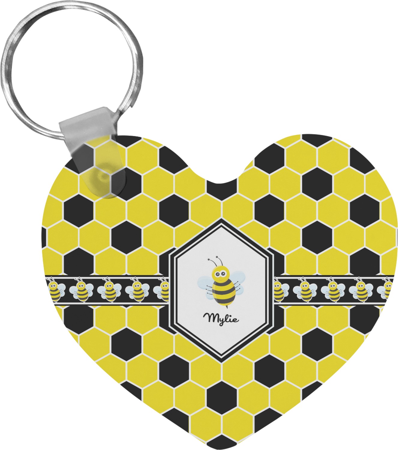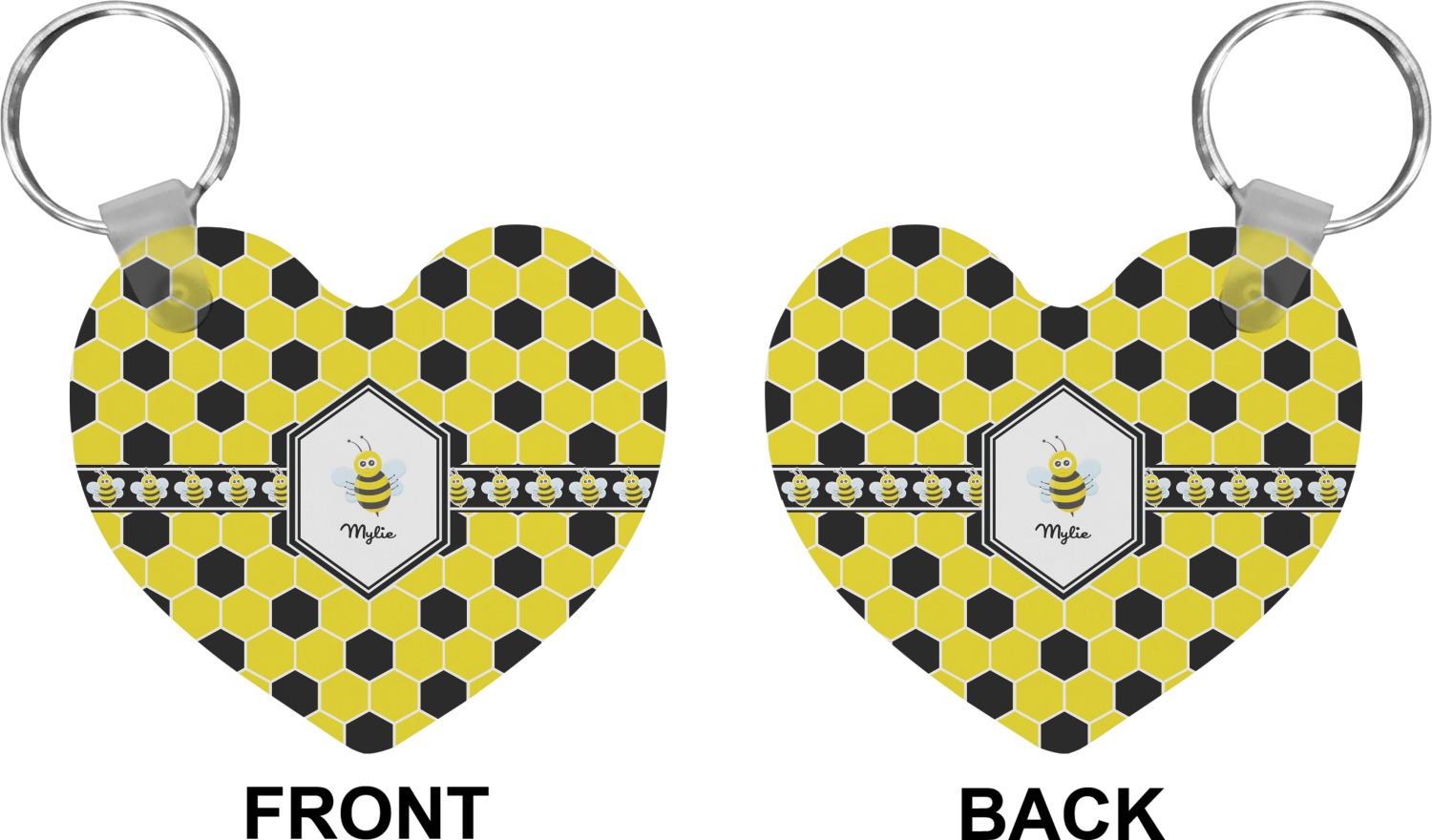 Our personalized keychains attach to the included metal, split key ring with a plastic, removable snap. Since a metal ring is included with your purchase, you have the liberty to keep your keys together on the ring, with or without your unique keychain. We offer this keychain in three different shapes: circle, heart, or diamond. We print your personalized design(s) on both sides of the key chain, and the surface has a glossy, reflective finish that only emphasizes your design. Each keychain is approximately 2.25 by 2.25 inches.