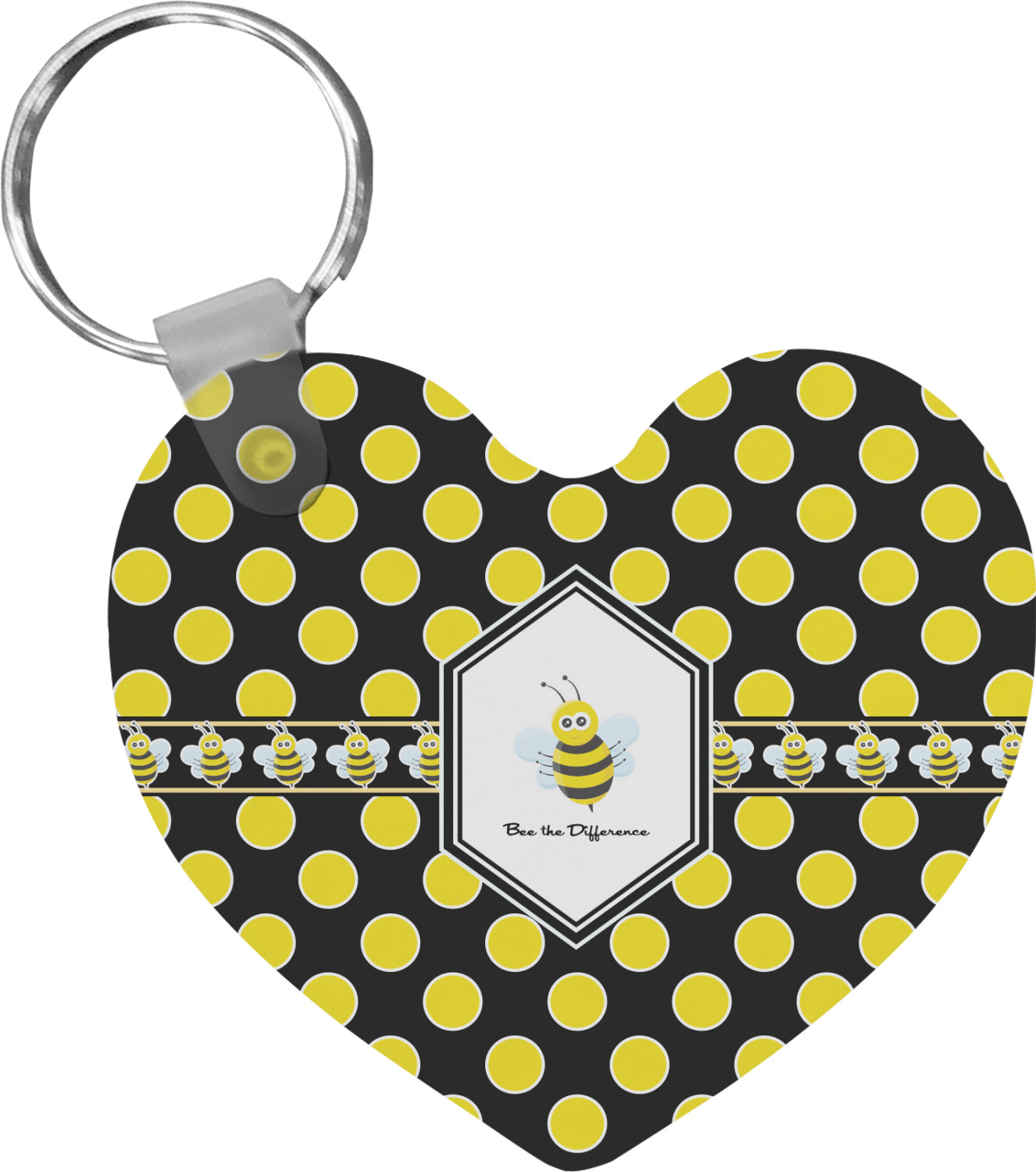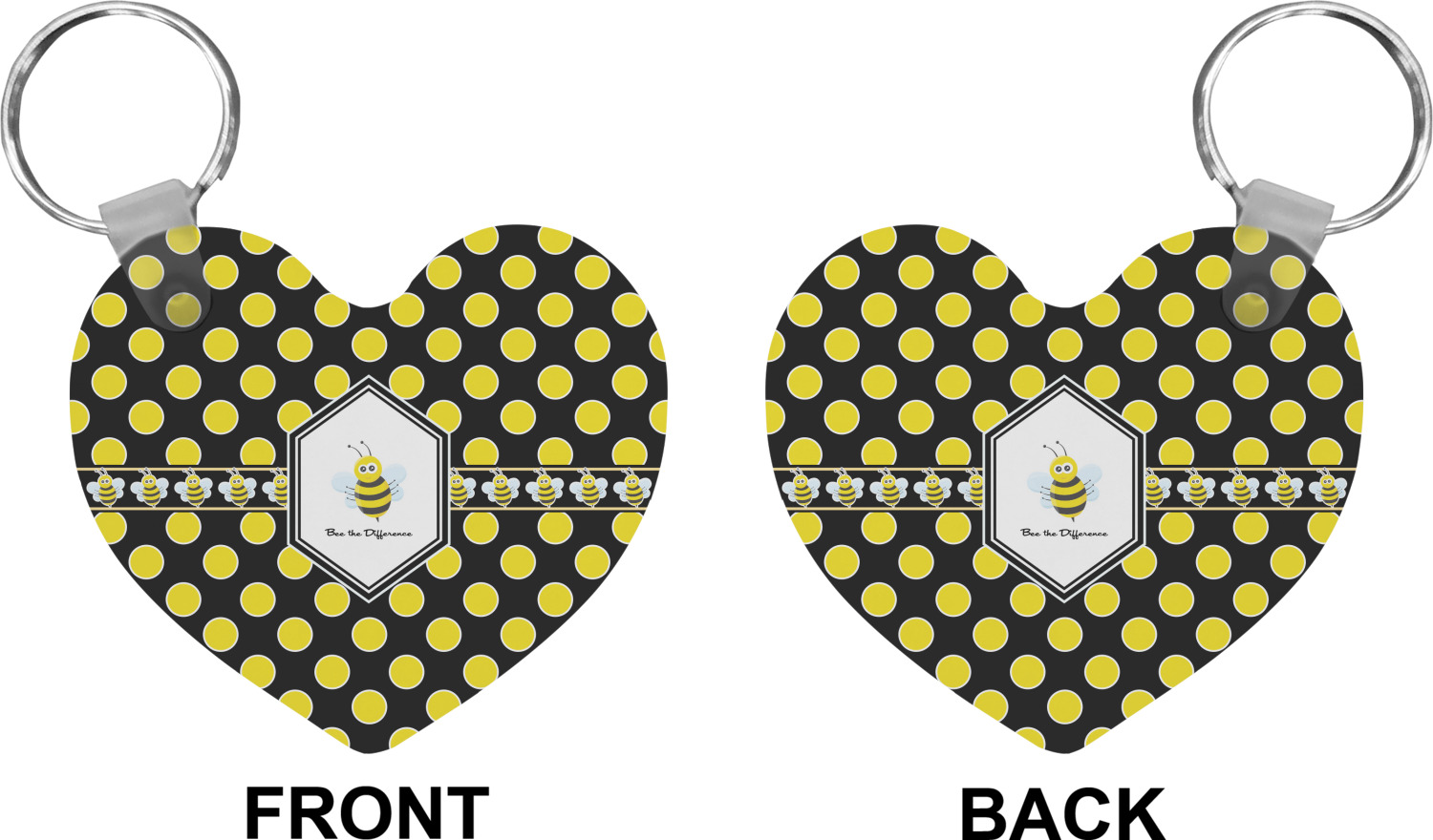 Our personalized keychains attach to the included metal, split key ring with a plastic, removable snap. Since a metal ring is included with your purchase, you have the liberty to keep your keys together on the ring, with or without your unique keychain. We offer this keychain in three different shapes: circle, heart, or diamond. We print your personalized design(s) on both sides of the key chain, and the surface has a glossy, reflective finish that only emphasizes your design. Each keychain is approximately 2.25 by 2.25 inches.
