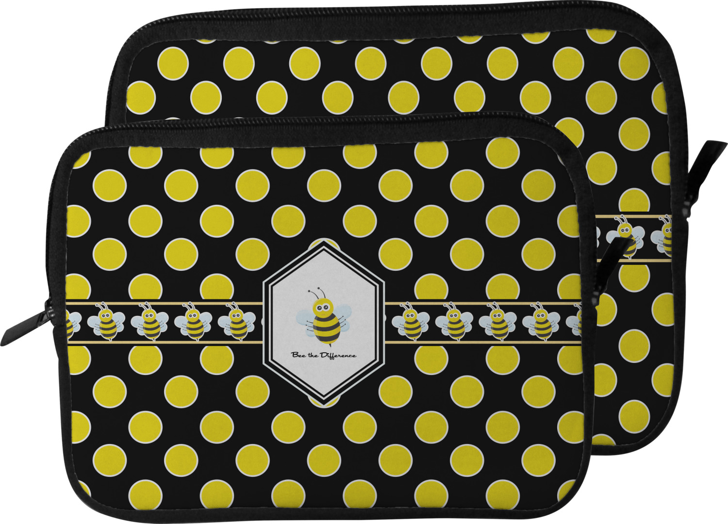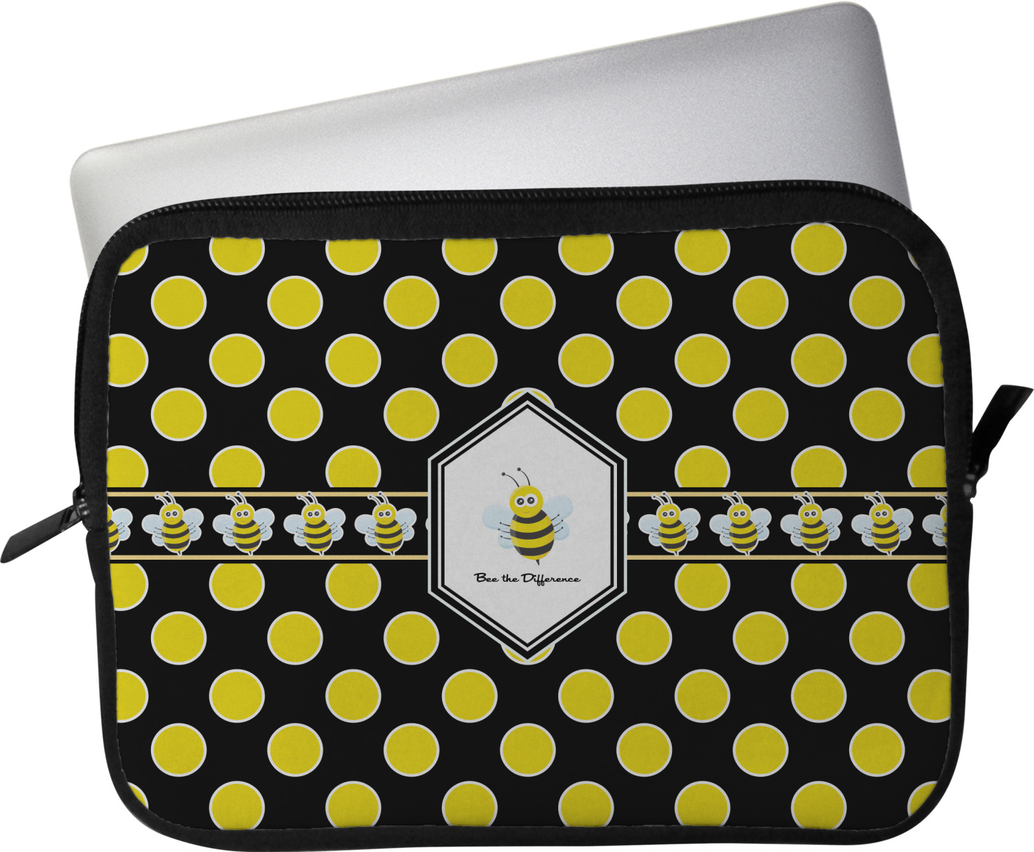 These laptop covers are built from a water-resistant, cushioned neoprene. We display your personalized design on the front of this computer sleeve, while the other sides are simply the black color of the neoprene fabric. A zipper lines the top half of this case, for direct access to your device. For added protection, the interior of this neoprene laptop sleeve is lined with a padded, minky-like material.